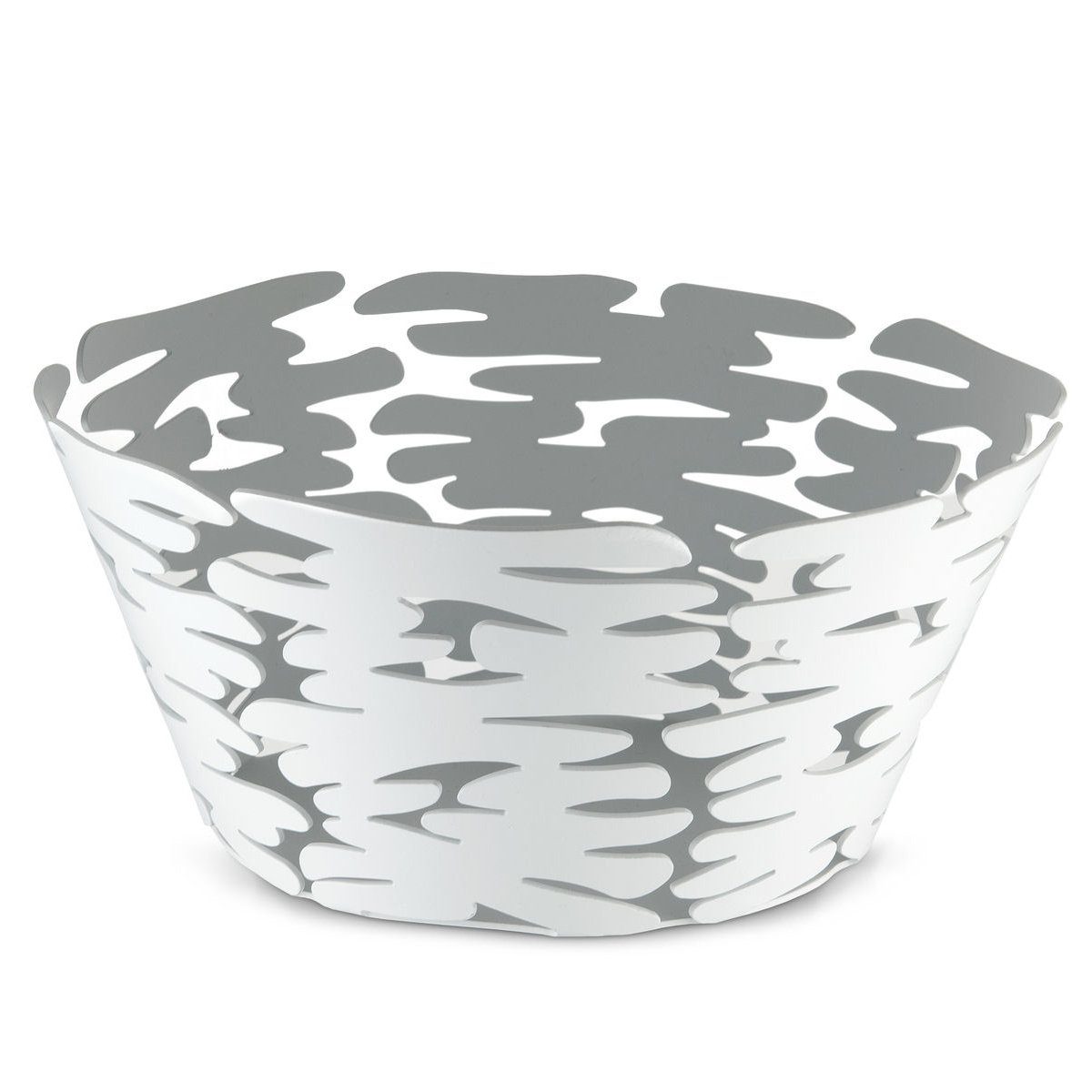 Die runde Korbschale BARKET von Alessi aus coloriertem Stahl besticht vor allem durch das organische, durchbrochene Design des Schüsselrandes. Designer-Duo Michael Boucquillon und Donia Maaoui ließen sich hierfür inspirieren von der natürlichen Schönheit von Baumrinde (englisch Bark). Das Metall wird mit Lasern geschnitten und die Stahlplatten dann in ihre geschmeidige Form gebogen. Harmonisch und optisch spannungsvoll wirkt die Schale für sich allein als Deko-Objekt. Beeindrucken Sie Freunde und Familie darüber hinaus beim Servieren von Obst, Süßigkeiten, Brötchen oder anderen Kleinigkeiten. Oder erfreuen Sie sich an dem Stahlkorb als dekorative Ablage im Alltag, z.B. in der Küche, im Wohnzimmer, im Eingangsbereich oder Büro.
