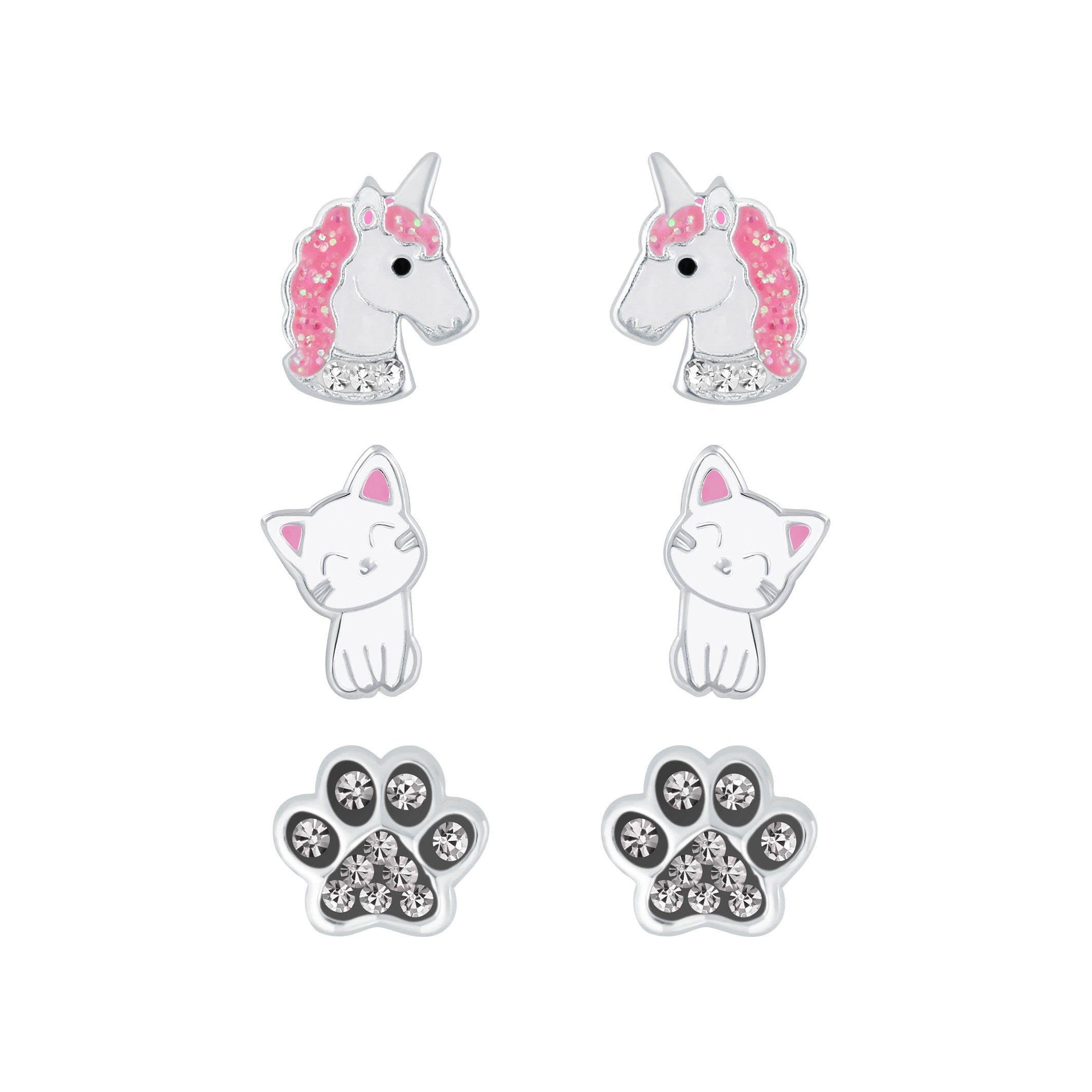 Ein Must-Have für alle Tierfans – egal ob groß oder klein. Dieses wunderschöne Ohrstecker-Set mit Einhörnern, Katzen und Pfoten ist aus feinstem 925 Sterling Silber gefertigt und hochglanzpoliert. Die Ohrstecker sind ein wundervolles Accessoire und werden sicher mit Schmetterlingsverschlüssen gehalten. Все Schmuckstücke werden in einer hochwertigen Schmuckbox geliefert.