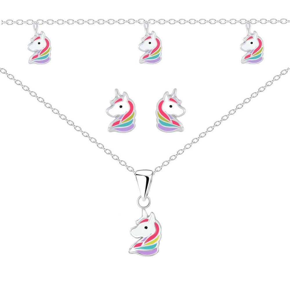 Eigenschaften Armschmuck | 925 Sterling Silber, 14 cm zzgl. 3 cm Verlängerung, 3 Einhörner in regebogenfarben |