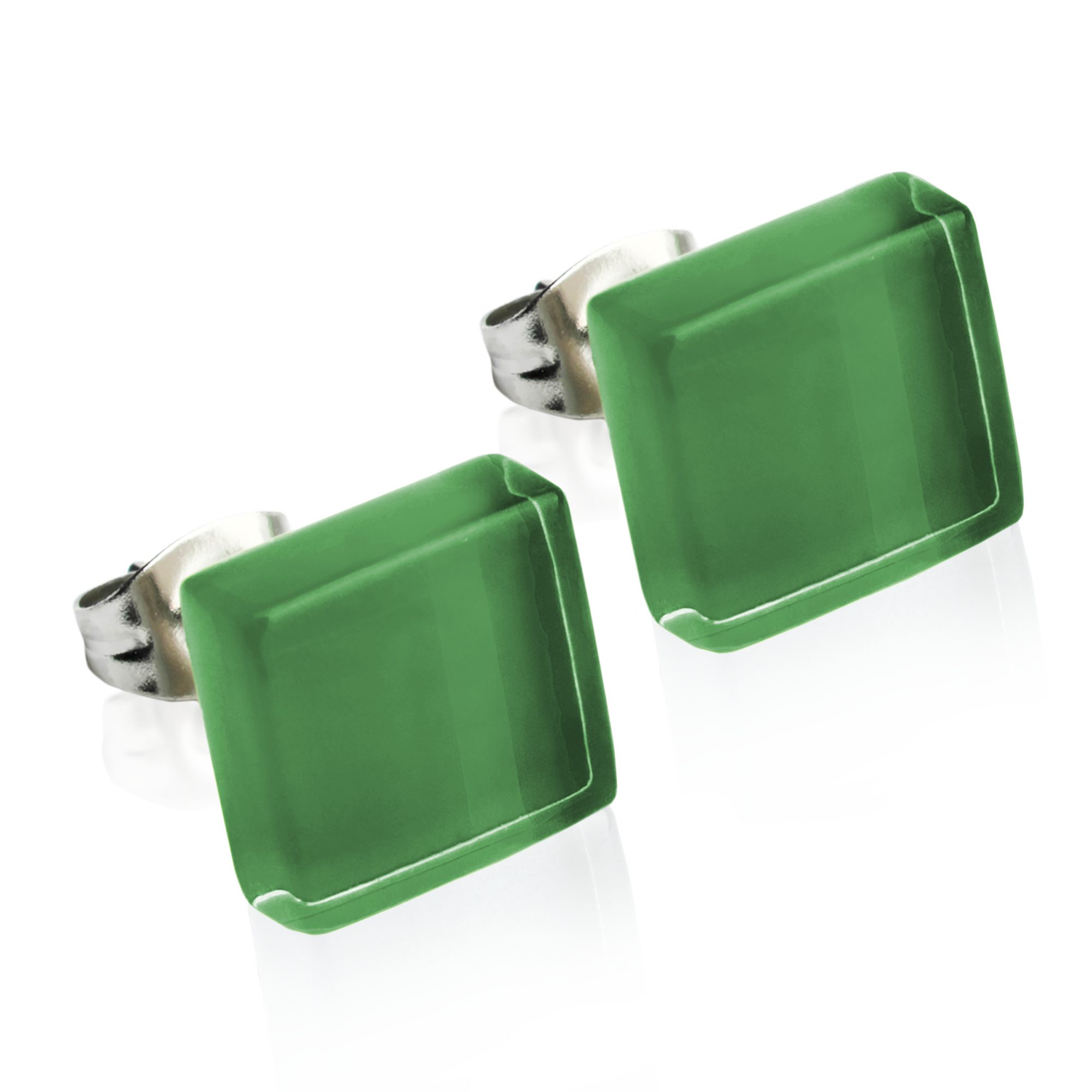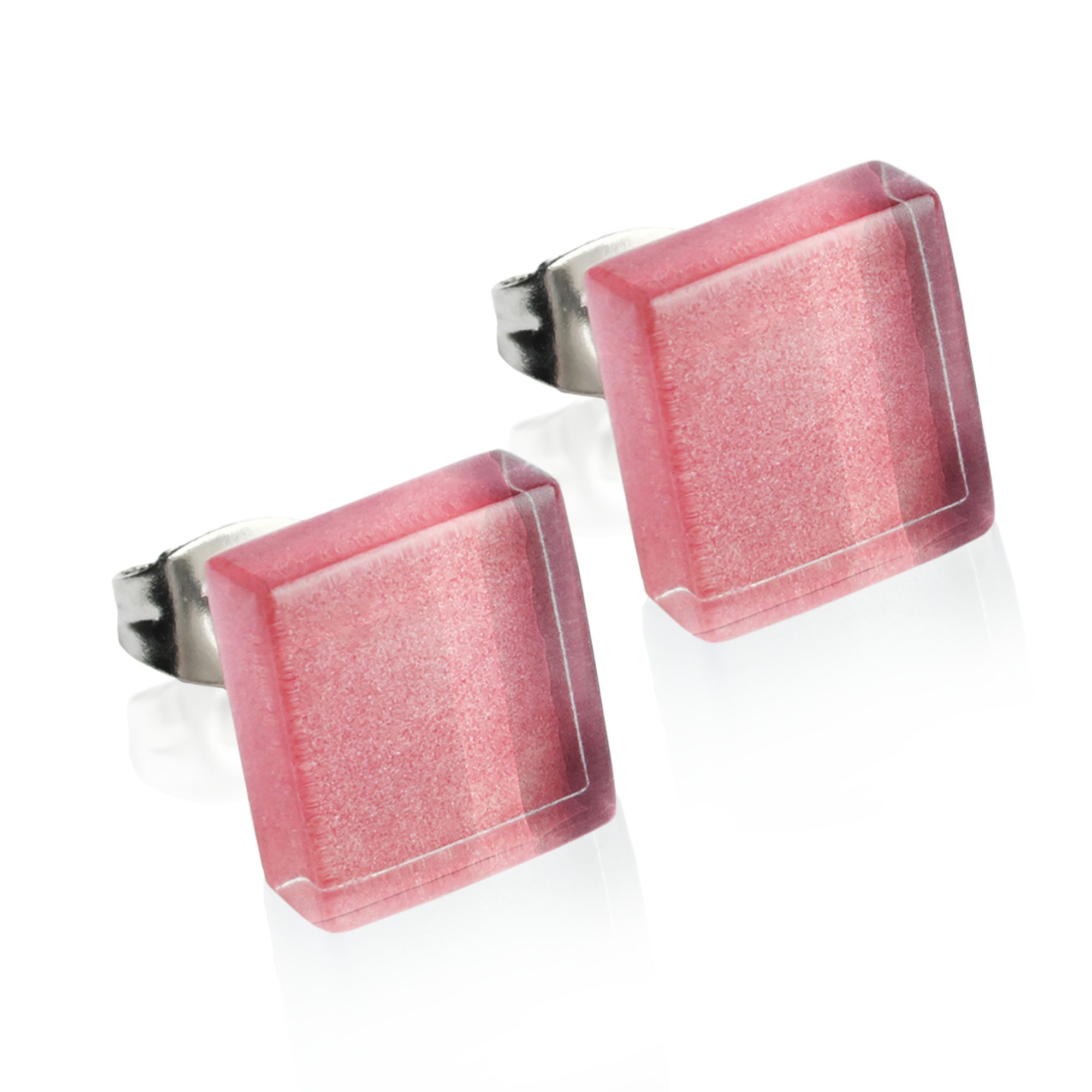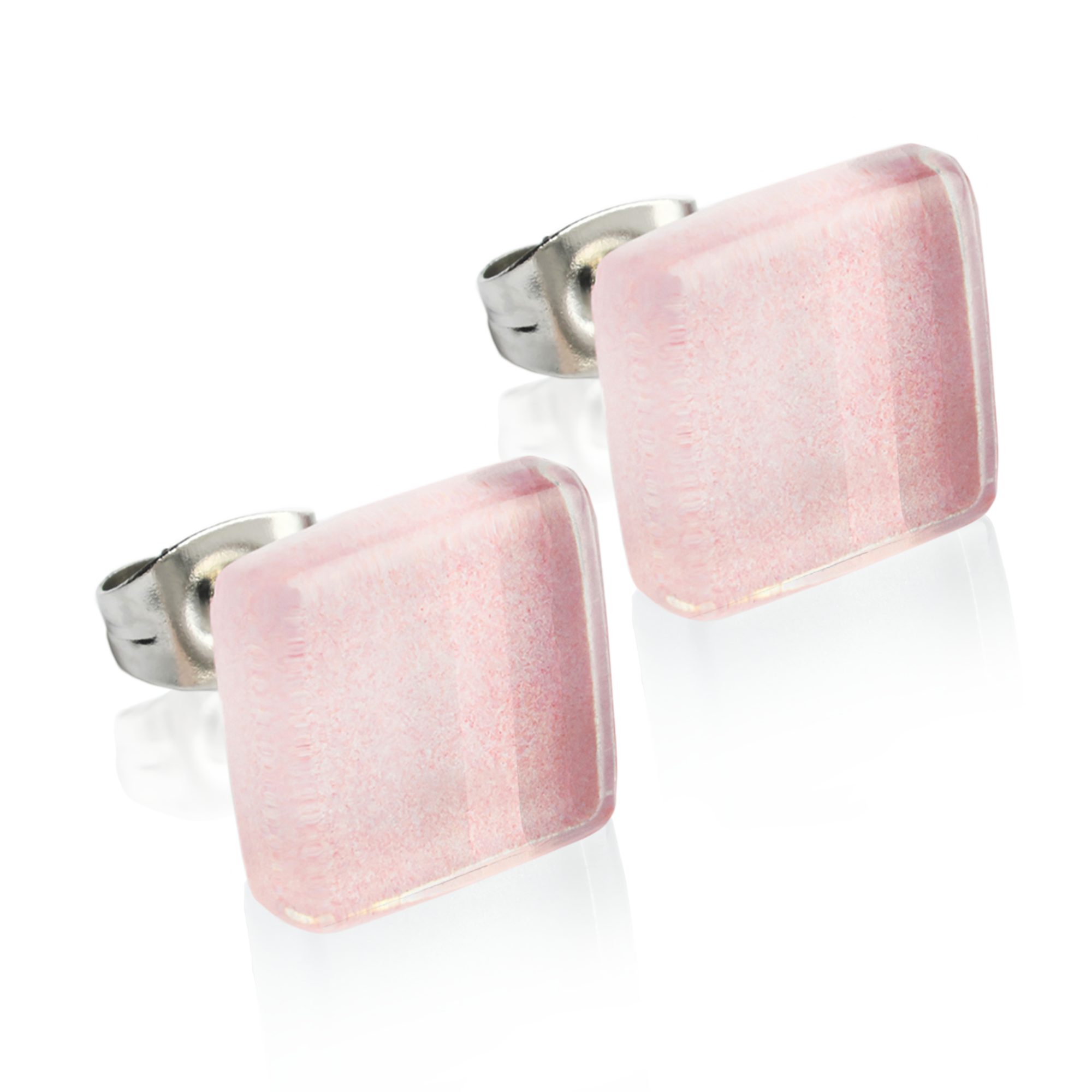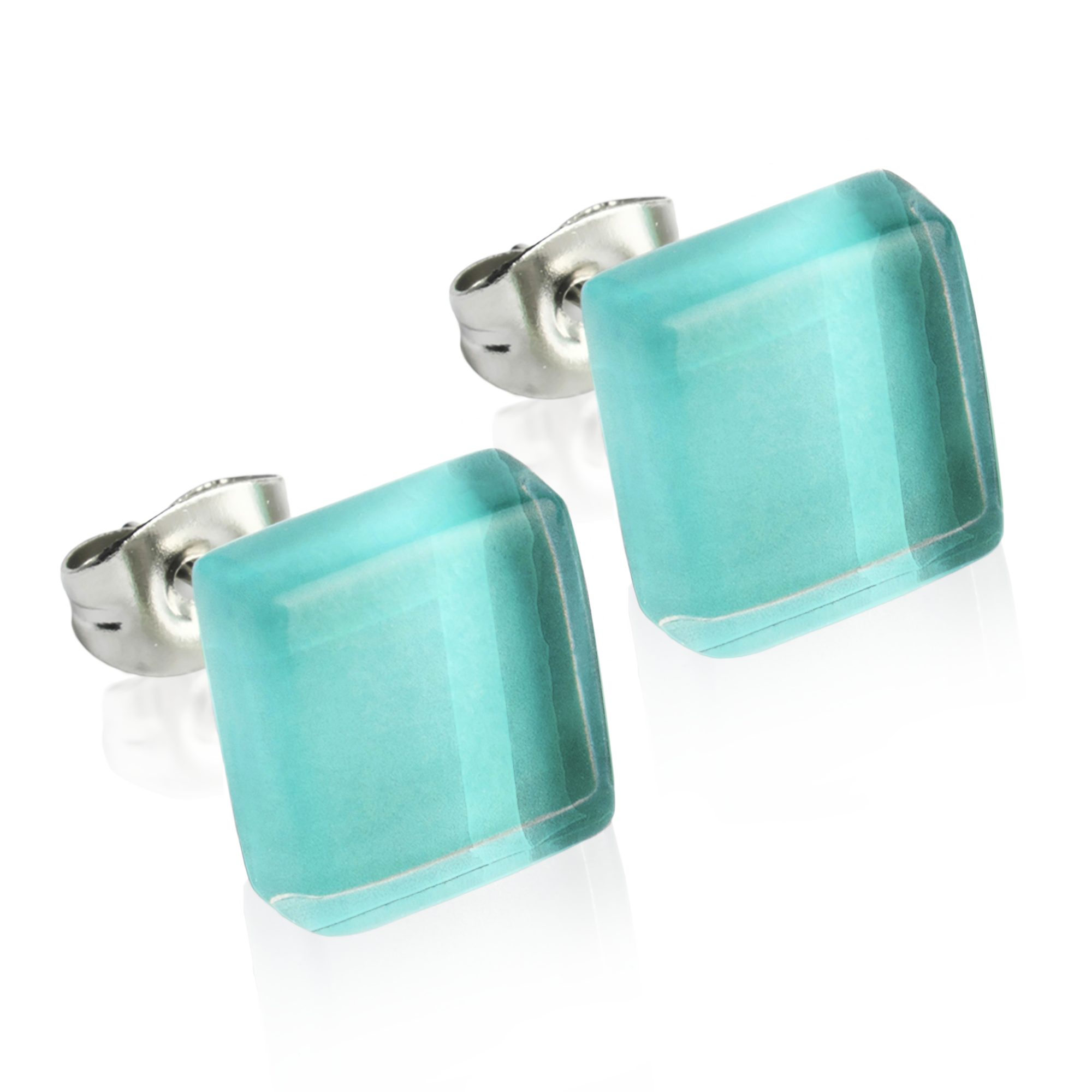 Paar Ohrstecker Kleine quadratische Stecker aus Glas • hypoallergener Edelstahl • 10mm