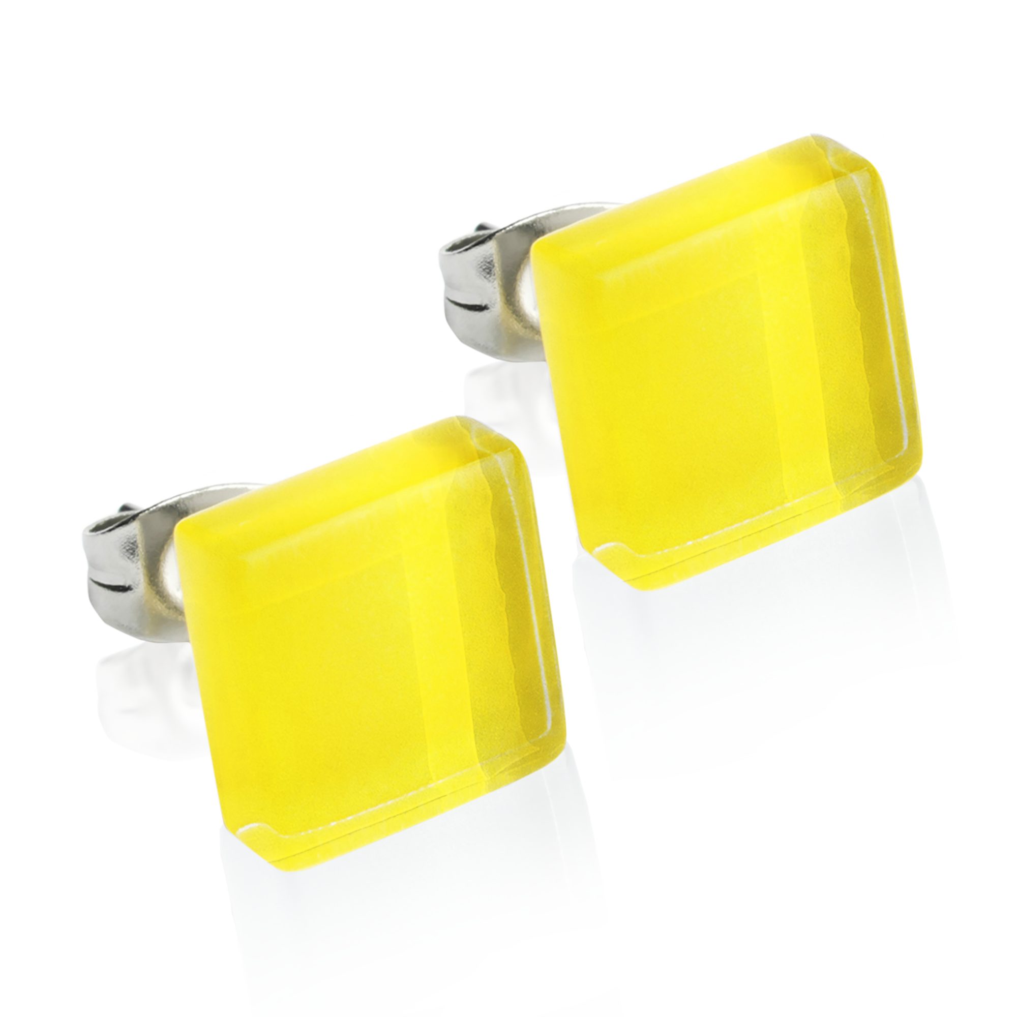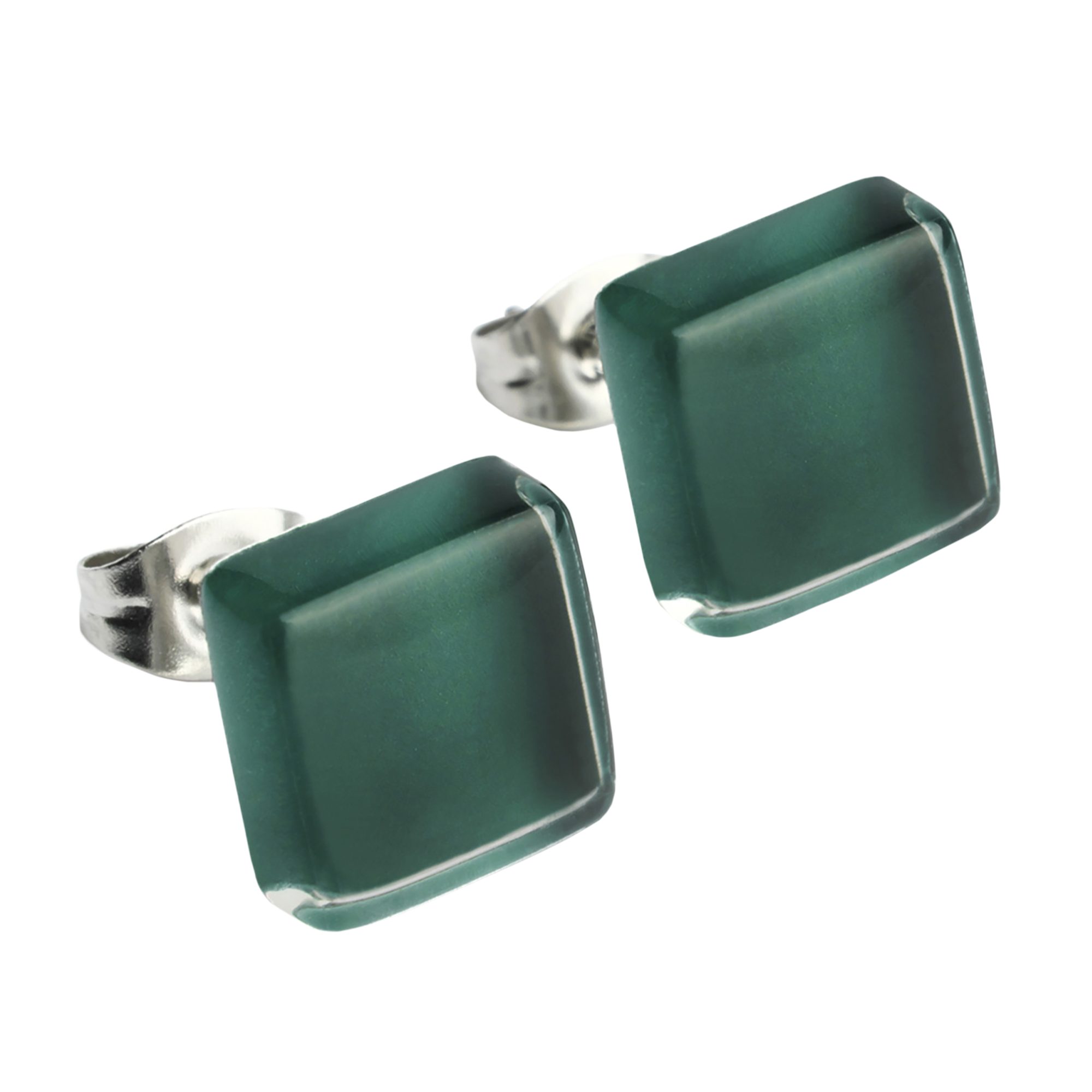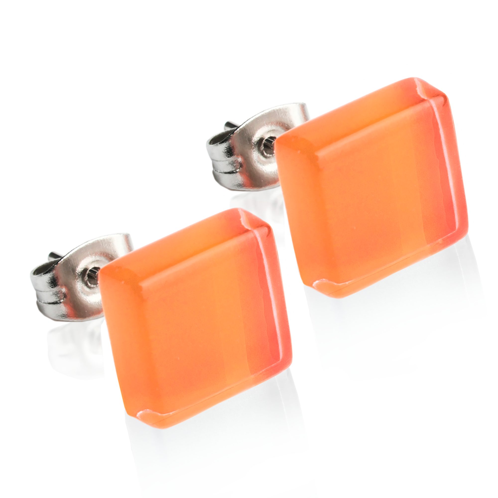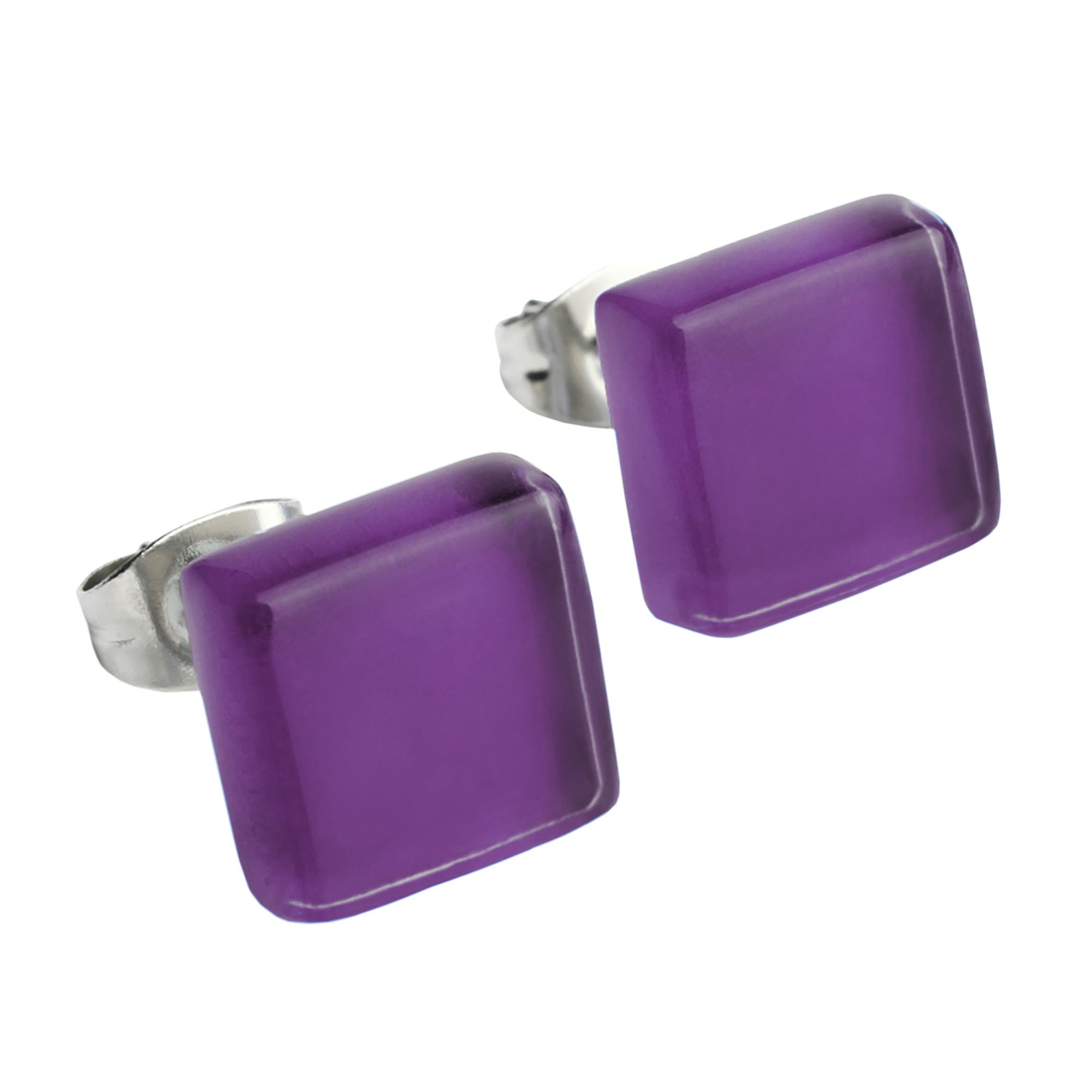 Paar Ohrstecker Kleine quadratische Stecker aus Glas • hypoallergener Edelstahl • 10mm