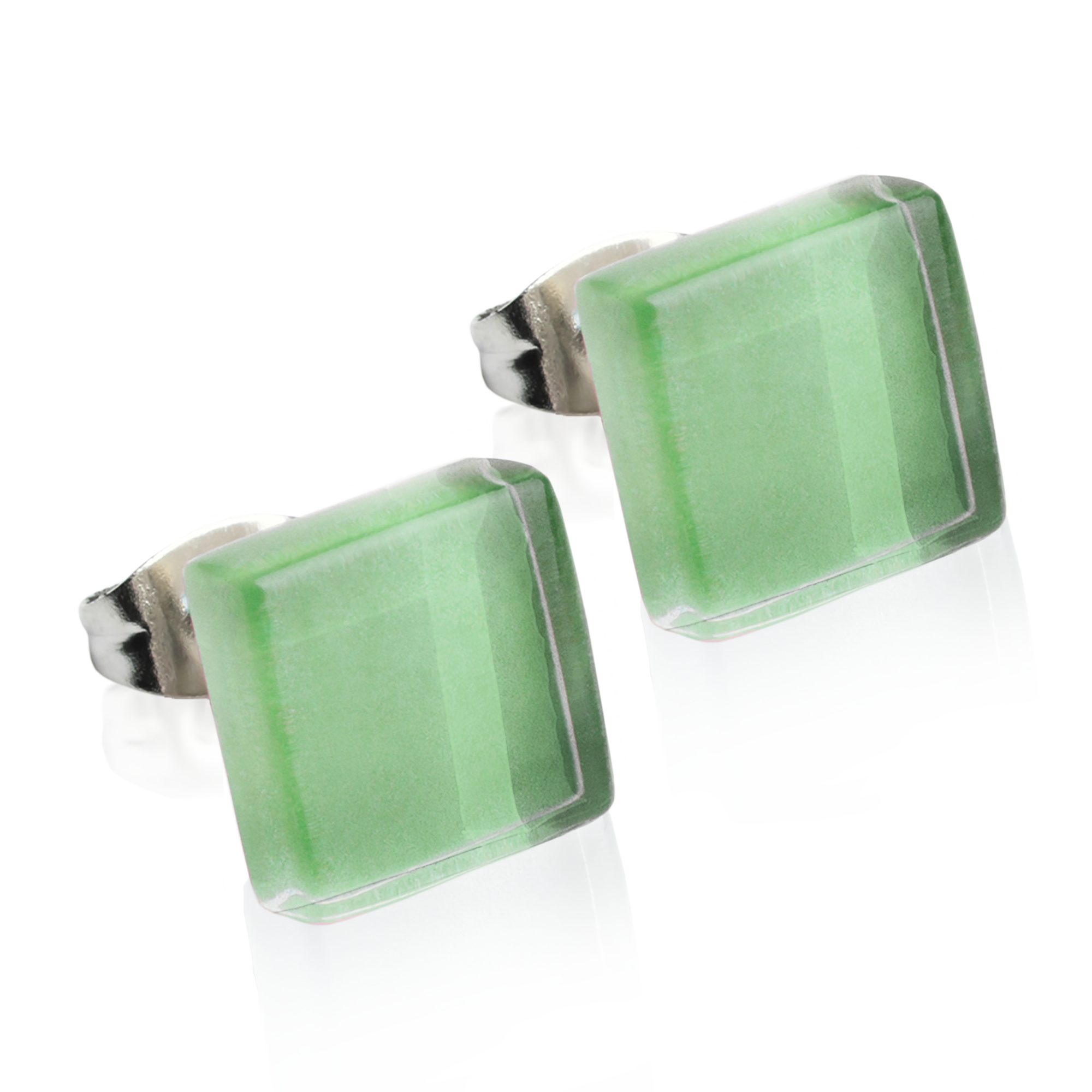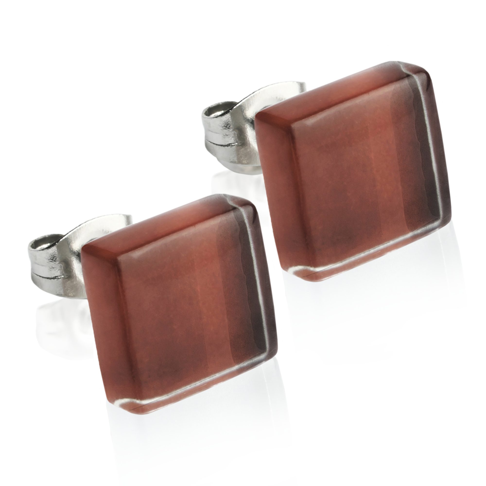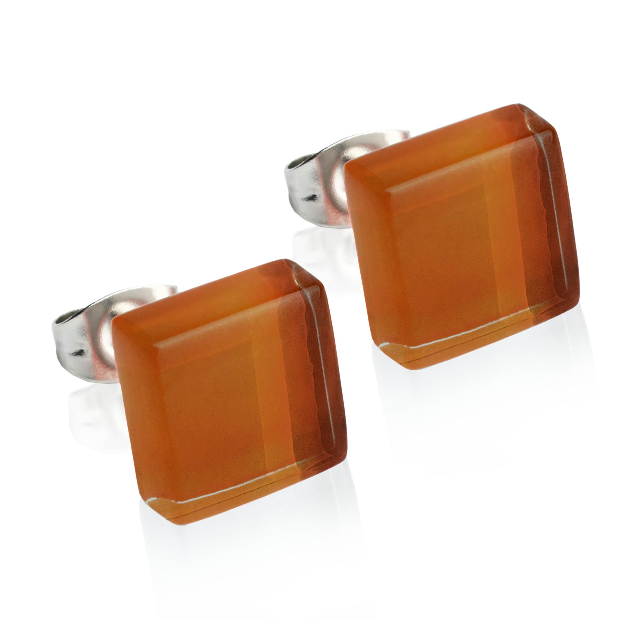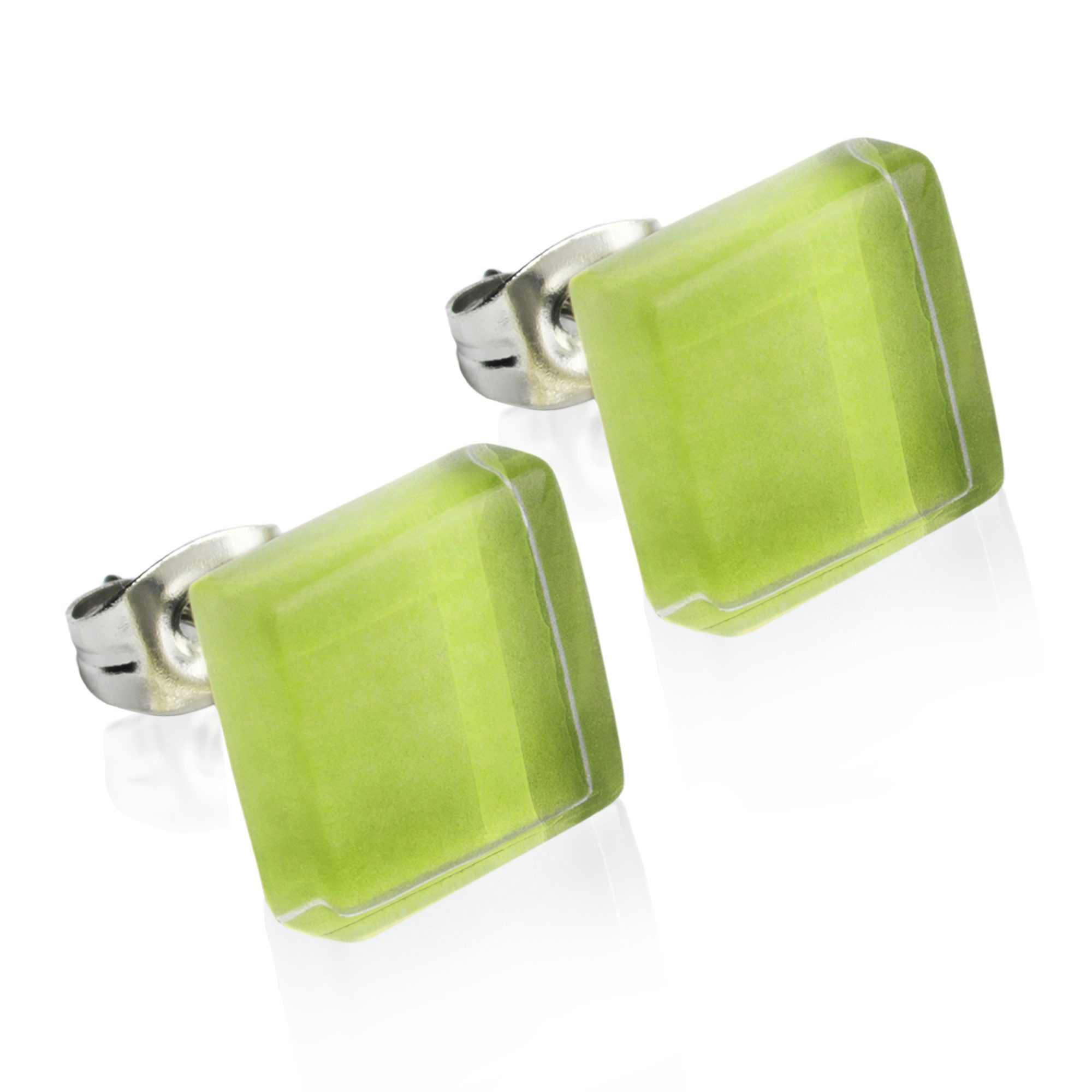 Paar Ohrstecker Kleine quadratische Stecker aus Glas • hypoallergener Edelstahl • 10mm
