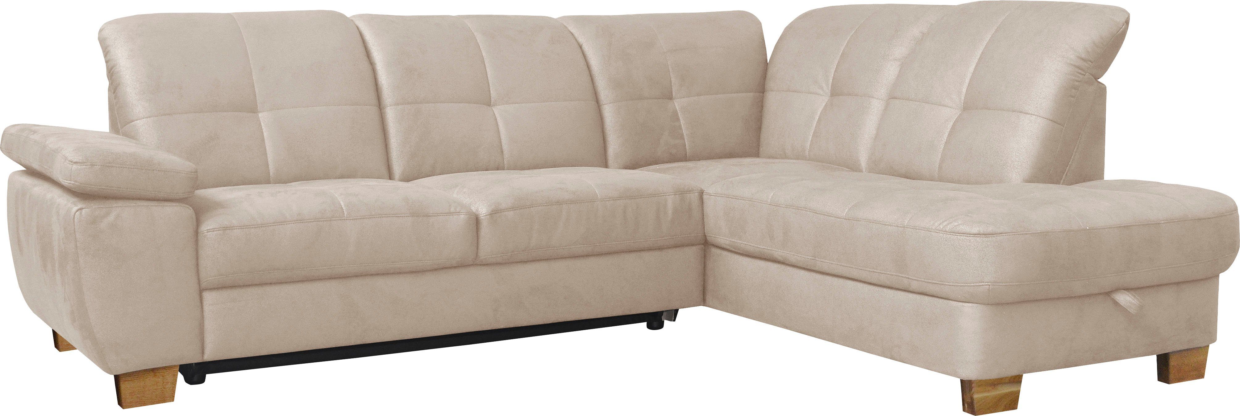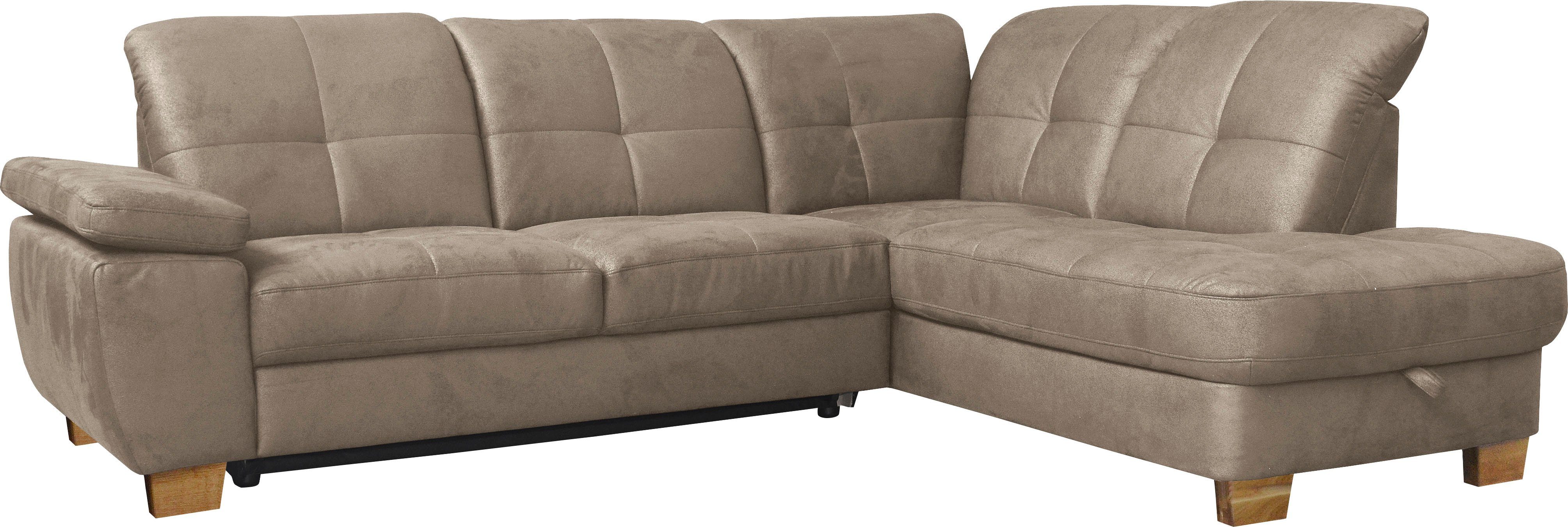 Dieses Ecksofa »Karima« von alina bietet dir dank der Wellenunterfederung hohen Sitzkomfort und Tragfähigkeit. Die Couch ist manuell verstellbar und lässt sich so mit wenigen Handgriffen in die gewünschte Position bringen. Von vorne betrachtet ist die Ottomane nach rechts ausgerichtet. Die maximale Belastbarkeit pro Sitzplatz liegt bei einem Gewicht von 120 Kilogramm. Die eichefarbenen Füße aus Massivholz überzeugen mit der einzigartigen Optik.