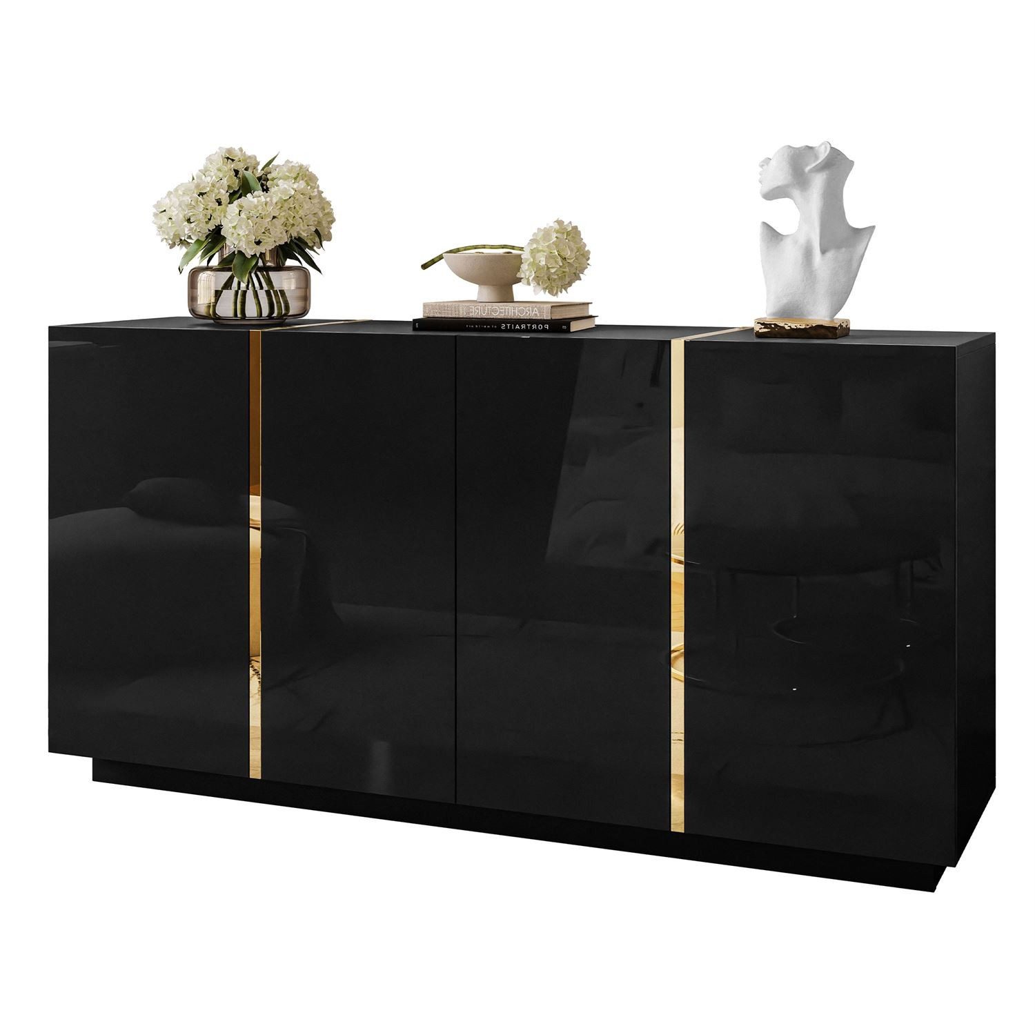 Glänzende Oberflächen der Fronten betonen den eleganten Charakter des Möbelstücks.