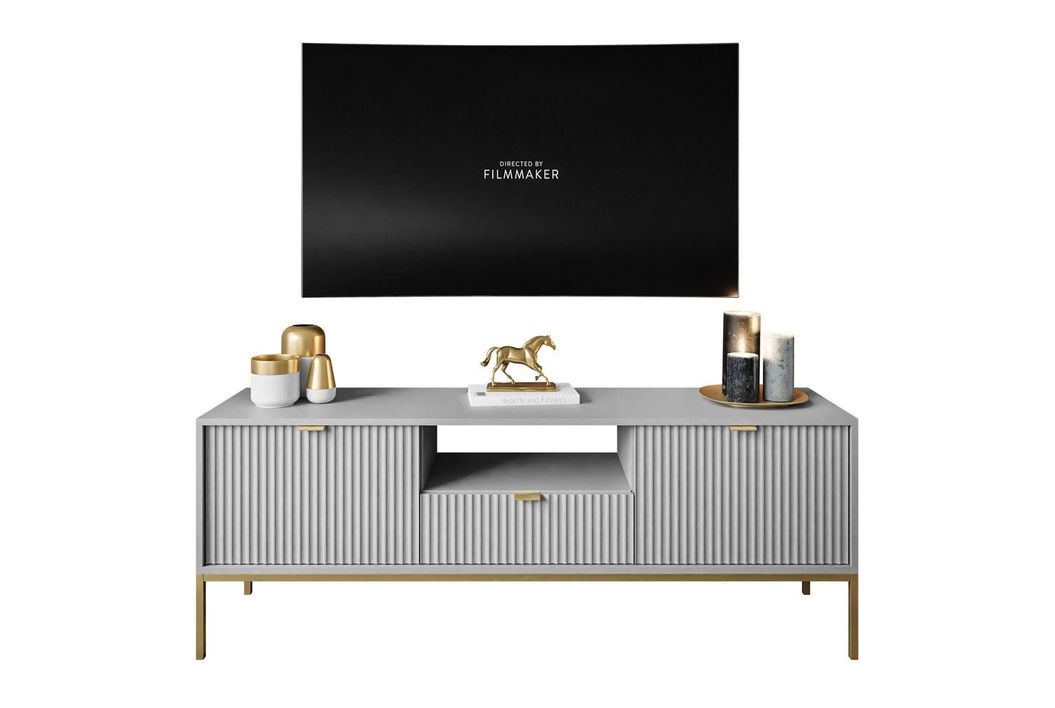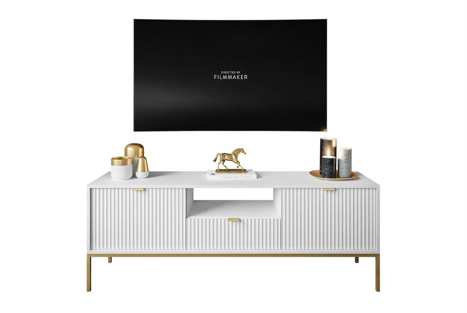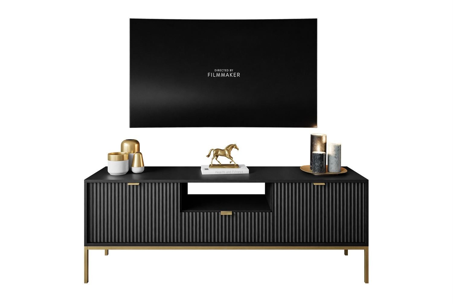 Dieser elegante TV-Schrank SINTINO GOLD, der durch sein einzigartiges Design und seine luxuriöse Verarbeitung besticht.