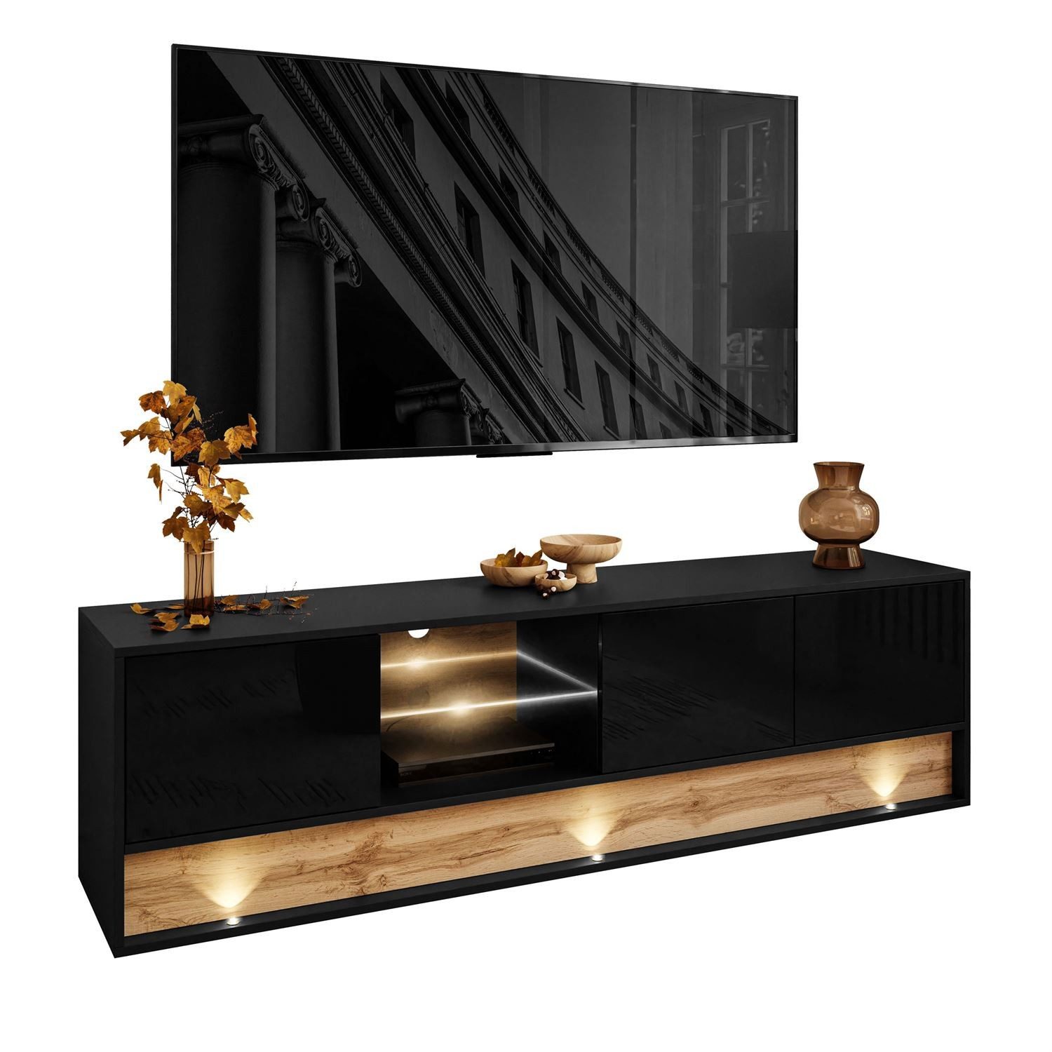 Farbe | Schwarz / Schwarz Hochglanz + Wotan Eiche |