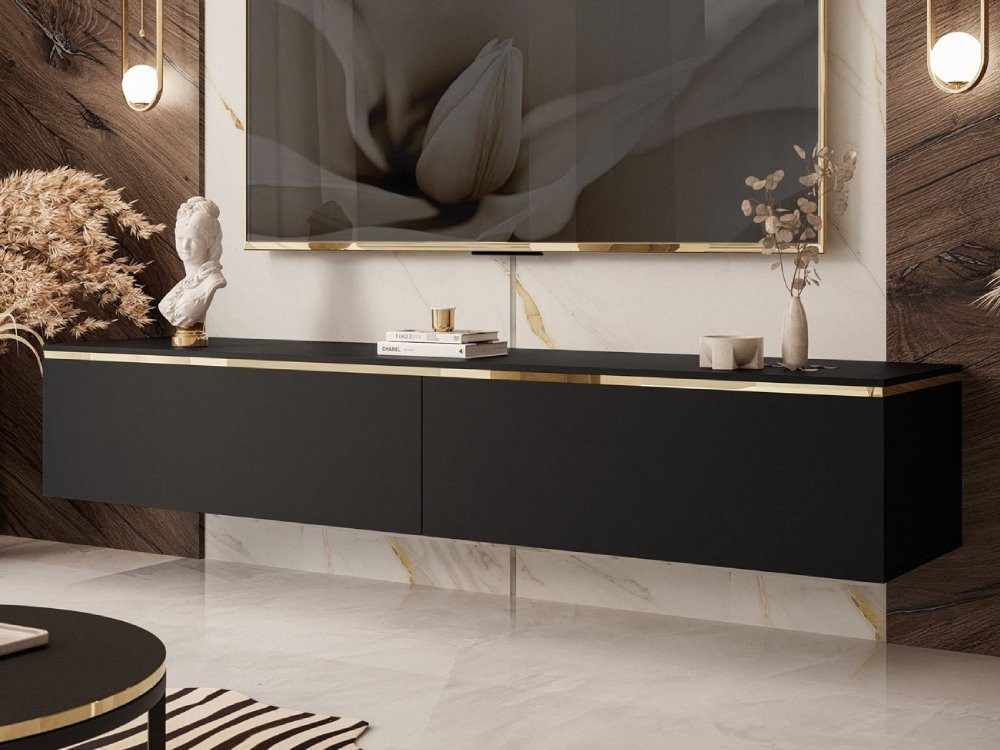 Sie haben die Wahl: hängender TV Schrank für ein leichtes, schwebendes Design oder als stehendes Lowboard auf goldfarbenen Metallfüßen. Für den Standfuß bieten wir zwei Вариантыn: