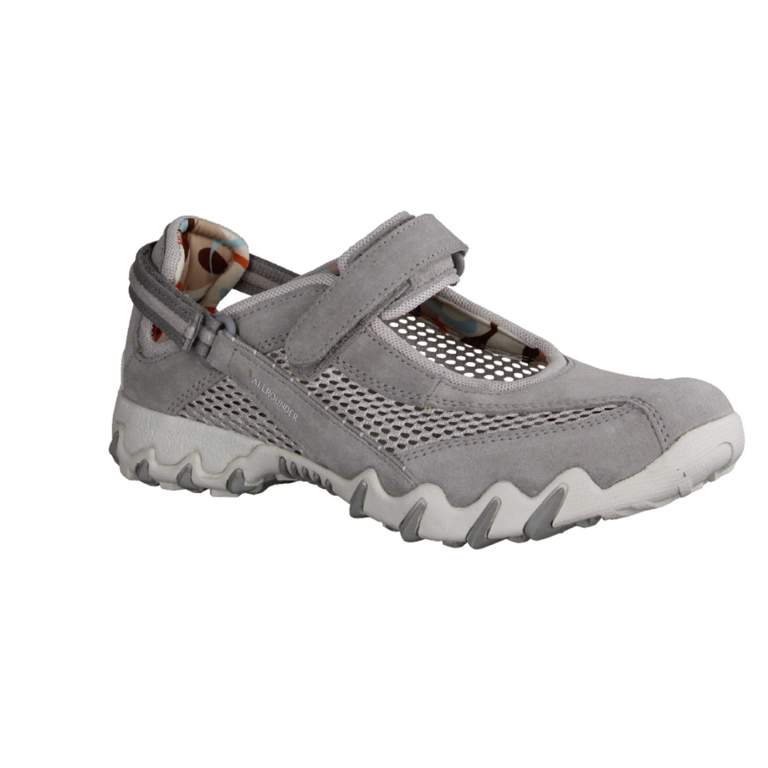 Ein sportlicher Ballerina den Sie gerne auch für leichte Outdooraktivitäten einsetzen können. Der bequeme Schuh von Allrounder by MEPHISTO ist an der Ferse und am Fußrücken mit praktischen Klettverschlüssen ausgestattet, diese halten den Ballerina sicher an Ihrem Fuß. Das Obermaterial endet auf einer griffigen Laufsohle aus Naturkautschuk. Innen erwartet Ihr Fuß eine luftige atmungsaktive Ausstattung aus Textil. Das herausnehmbare Fußbett macht den Schuh interessant für Damen, die Ihre eigenen Einlagen verwenden. Der Shockabsorber im Fersenbereich dämpft zudem Ihre Schritte und schont die Gelenke.