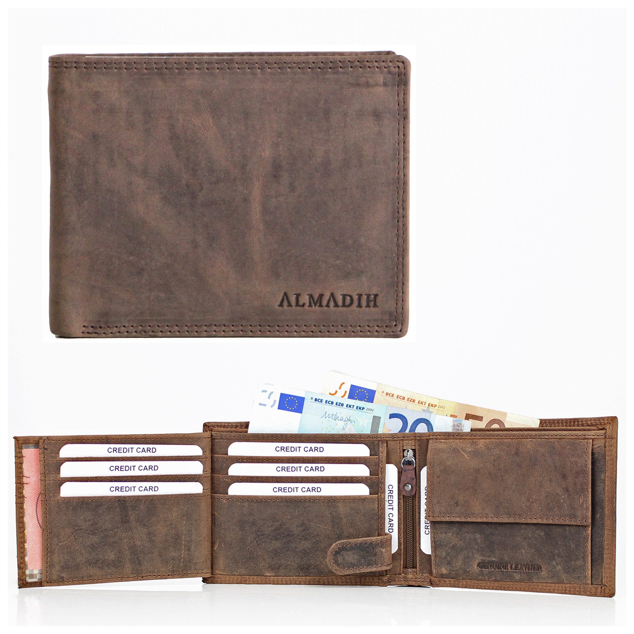 Das ALMADIH Portemonnaie ist aus Rindsleder gefertigt und hat viele Fächer für Kreditkarten, EC- oder Visitenkarten.