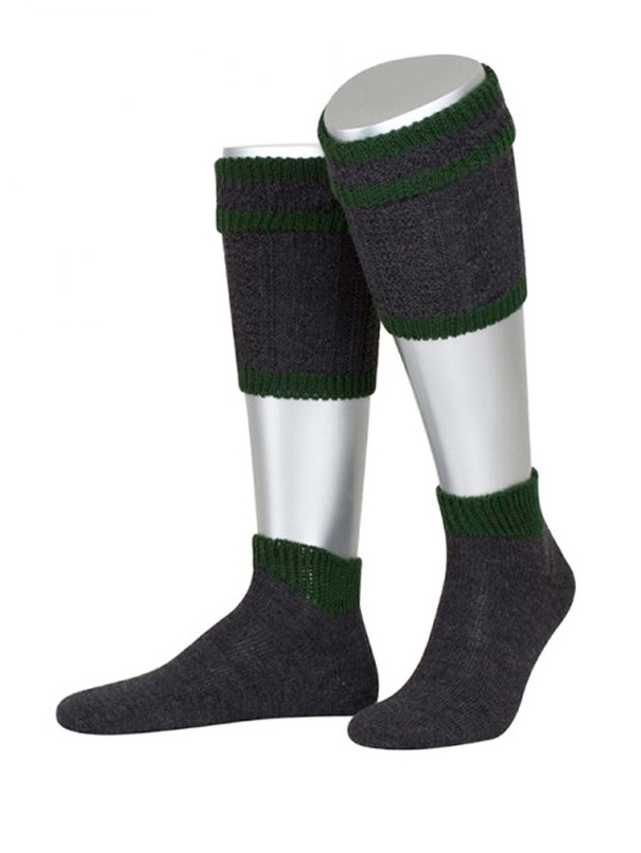 Dunkle Trachten Loferl die durch sorgsam gewählte Farbkombination bestechen - einfach ein Augenschmaus! Die Trachten Loferl in den perfekt aufeinander abgestimmten Farben anthrazit und tannengrün sorgen garantiert dafür, dass ihre Waden optimal in Szene gesetzt werden! Durch ihre hohe Elastizität passen sie sich individuell an und versprechen bestmöglichen Halt ohne Rutschen. Die Loferl bestehen aus einem hohen Anteil an ausgewählter Merino Schurwolle ohne nerviges Kratzen. Fersen- und Spitzenverstärkung sorgen zudem für lange Lebensdauer und hohen Tragekomfort. Materialauswahl und Verarbeitung finden unter höchsten Qualitätsansprüchen statt. Das handgearbeitete Zopfmuster ist ein besonderes Highlight der Loferl.