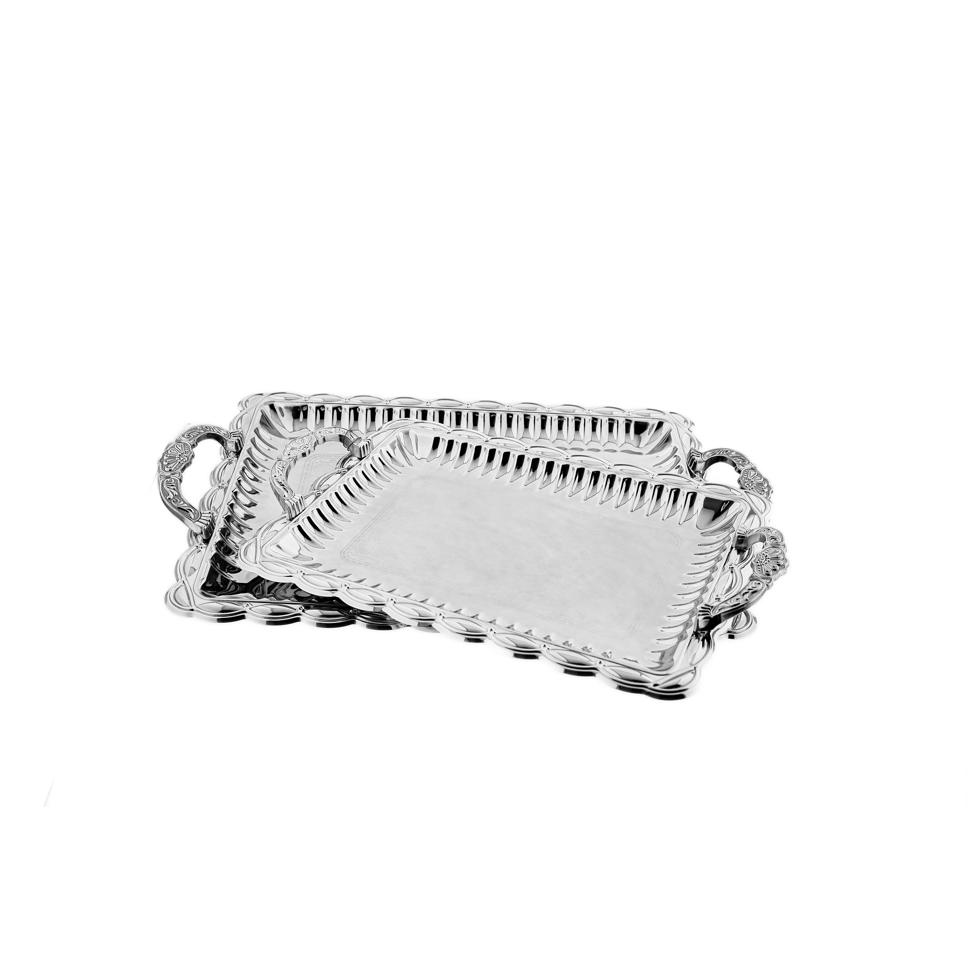Dieses 2er-Set Serviertabletts ist ideal für stilvolles Servieren, Dekorieren oder als dekoratives Highlight auf Ihrem Tisch. Die Tabletts bestehen aus erstklassigem 18/10 Edelstahl, der für seine Langlebigkeit, Korrosionsbeständigkeit und edlen Glanz bekannt ist. Die zwei unterschiedlichen Größen machen dieses Set vielseitig einsetzbar: