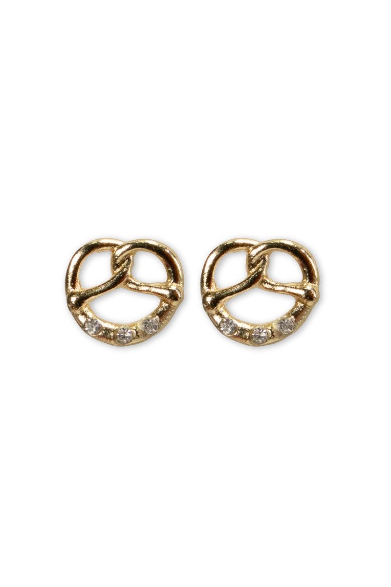 Verspielte Brezel Ohrstecker in Gold oder Silber mit funkelnden Strasssteinchen