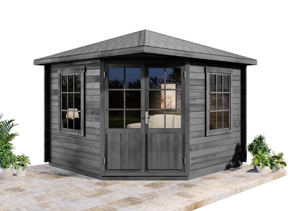 Das Gartenhaus Monica der Marke Alpholz gehört zu den Lieblingshäusern unserer Kunden. Mit dessen kompakter 5-Eck-Form passt es mühelos in jeden Garten und das Spitzdach samt breiter Doppeltür verleihen dem Haus ein modernes, einladendes Aussehen. Egal, für welchen Anstrich Sie sich entscheiden, dieses Gartenhaus macht stets eine gute Figur. , Artikeldetails zum Gartenhaus Monica: Außenmaß: ,300 x ,300 cm Sockelmaß: ,280 x 280 cm Seitenwandhöhe: ca. 218 cm Gesamthöhe: ca. 270 cm Nutzfläche: ca. ,7,0 m² Rauminhalt: ,ca. 18,5 m³ Leimholz-Doppeltür: ca. ,134 x 190 cm 2x Ausstellfenster: ca. ,80 x ,120 cm Wandstärke: ,28 mm Im Lieferumfang des Gartenhauses enthalten: Massivholzdach aus Nut- und Federbrettern alle Blockbohlen mit 4-fach Eckausfräsung (wind- u. regendicht) Verglasung bei Türen &, Fenstern aus Echtglas hochwertige Doppeltür mit Leimholzrahmen hochwertige Türschwelle aus Aluminium (Abbildung ähnlich) Sprossenrahmen für Fenster ,&, Tür inkl. Lüftungsgitter-Set für die bessere Luftzirkulation im Gartenhaus Sturmleisten für Windsicherung Schloss, Drückergarnitur &, Montagematerial Lieferung ohne Dachpappe Lieferung in natur ohne Farbbehandlung Lieferung ,ohne Fußboden Wenn bei Fenstern oder Türen Sprossen im Lieferumfang sind, so werden diese separat mitgeliefert. Sie haben also immer die Wahl, ob Sie das Haus in einer klassischen Optik mit Sprossen/Holzkreuzen, oder etwas moderner ohne haben möchten. , Lassen Sie sich von den Projekten unserer Kunden inspirieren. Bitte beachten Sie, dass es sich bei dem im Video gezeigten Modell um ein ähnliches Produkt handelt. Das Produkt wird ständig weiterentwickelt. Die individuelle Maserung und Farbe des Holzes können dazu führen, dass das Produkt vom Bild abweicht. ,