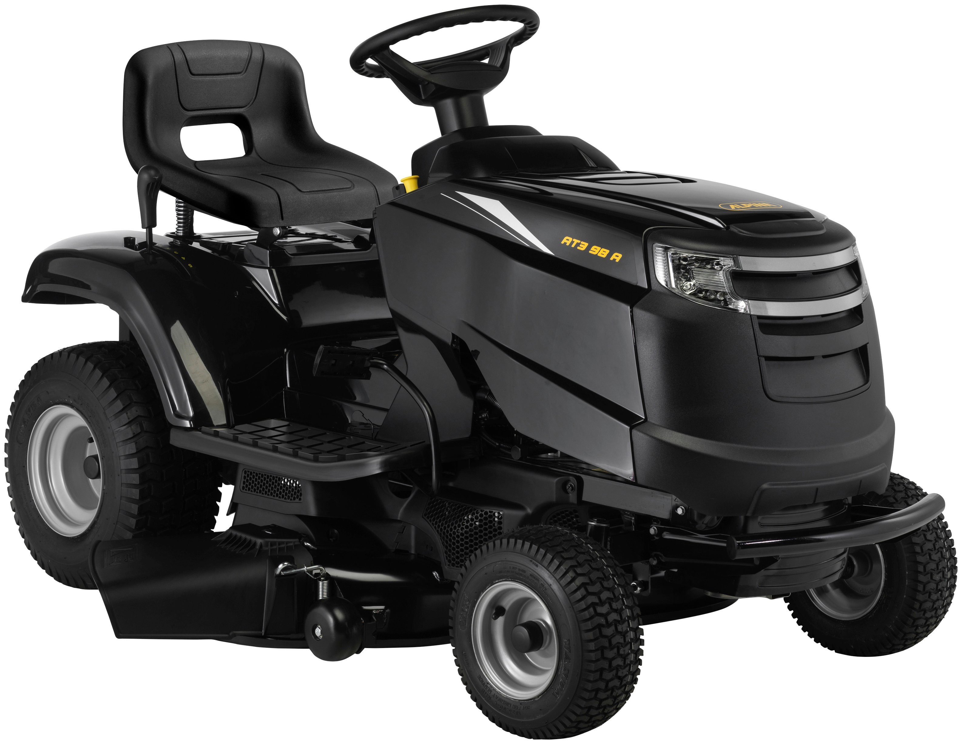 Der ALPINA AT3 98 A ist ein kompakter Seitenauswurf-Rasentraktor, der dank seines kleinen Wendekreises leicht zu fahren ist. So lassen sich Rasenflächen in der Nähe von Steinen oder Kanten problemlos schneiden. Das Herzstück des AT3 98 A ist der ST 350 Motor (Powered by STIGA), der mit einer Leistung von 6,5 kW (8,8 PS) bei 2800 U/min und einem Hubraum von 352 cm³ zu überzeugen weiß. Das Mähwerk ist mit zwei gegenläufigen Doppelmessern ausgestattet und kann bequem über die elektromagnetische Kupplung zugeschaltet werden. Danach steht Dir eine 98 cm Schnittbreite zur Verfügung, die sich in 7 Stufen, von 25 bis 80 mm, in ihrer Schnitthöhe regulieren lässt. Hierbei wird durch die Tasträder stets sichergestellt, dass ein Kontakt des Mähwerks mit dem Boden vermieden wird. Der AT3 98 A verfügt über einen Wasseranschluss, der die Reinigung des Mähraumes erleichtert. Mit dieser Ausstattung eignet sich der AT3 98 A für Rasenflächen von bis zu 4500 m². Dank der Scheinwerfer ist selbst das mähen in der Dämmerung kein Problem. Der AT3 98 A kann durch zahlreiches Zubehör, wie zum Beispiel ein Mulchkit oder ein Schneeschild für den Winterdienst, erweitert werden.