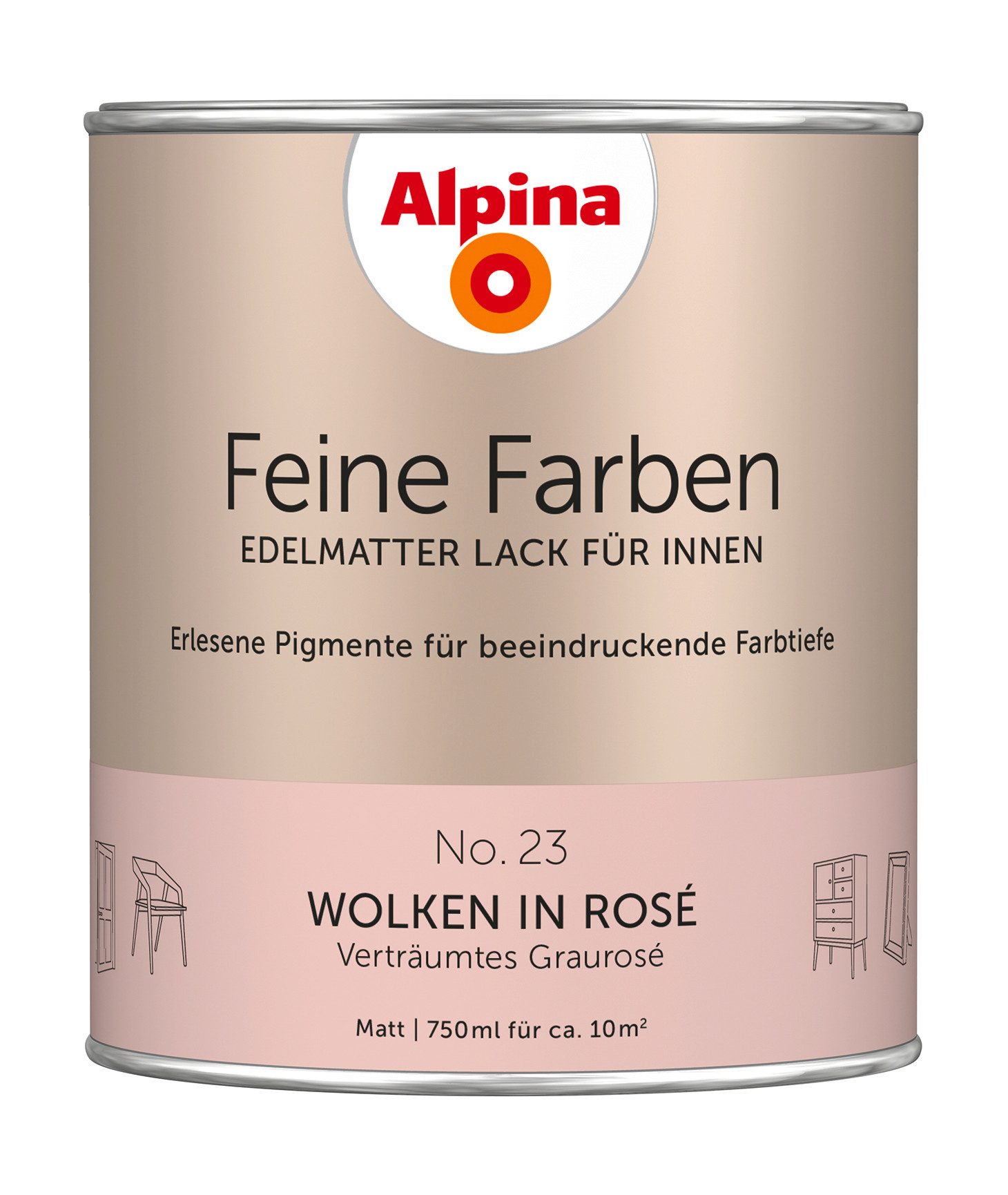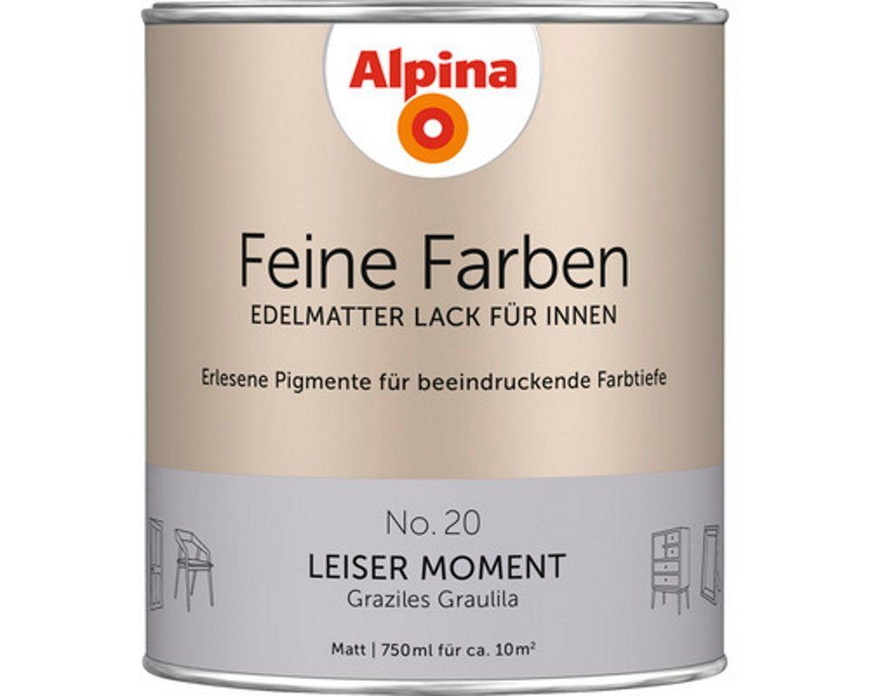 34 edelmatte, zeitlose Buntlacke mit beeindruckender Farbtiefe und perfektem Verlauf. Mit Alpina Feine Farben Lack verleihen Sie Ihren Möbeln, Türen oder Deko-Objekten einen edelmatten, noblen Charakter und setzen Ihr Zuhause gekonnt in Szene. Jede einzelne dieser zeitlos-klassischen Nuancen besitzt eine einzigartige Persönlichkeit. In harmonischer Kombination mit den Feine Farben Wandfarben schaffen sie ein edles, vollendetes Raumgefühl.