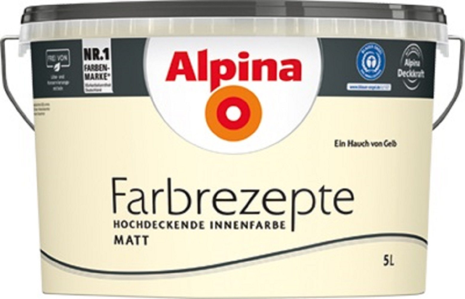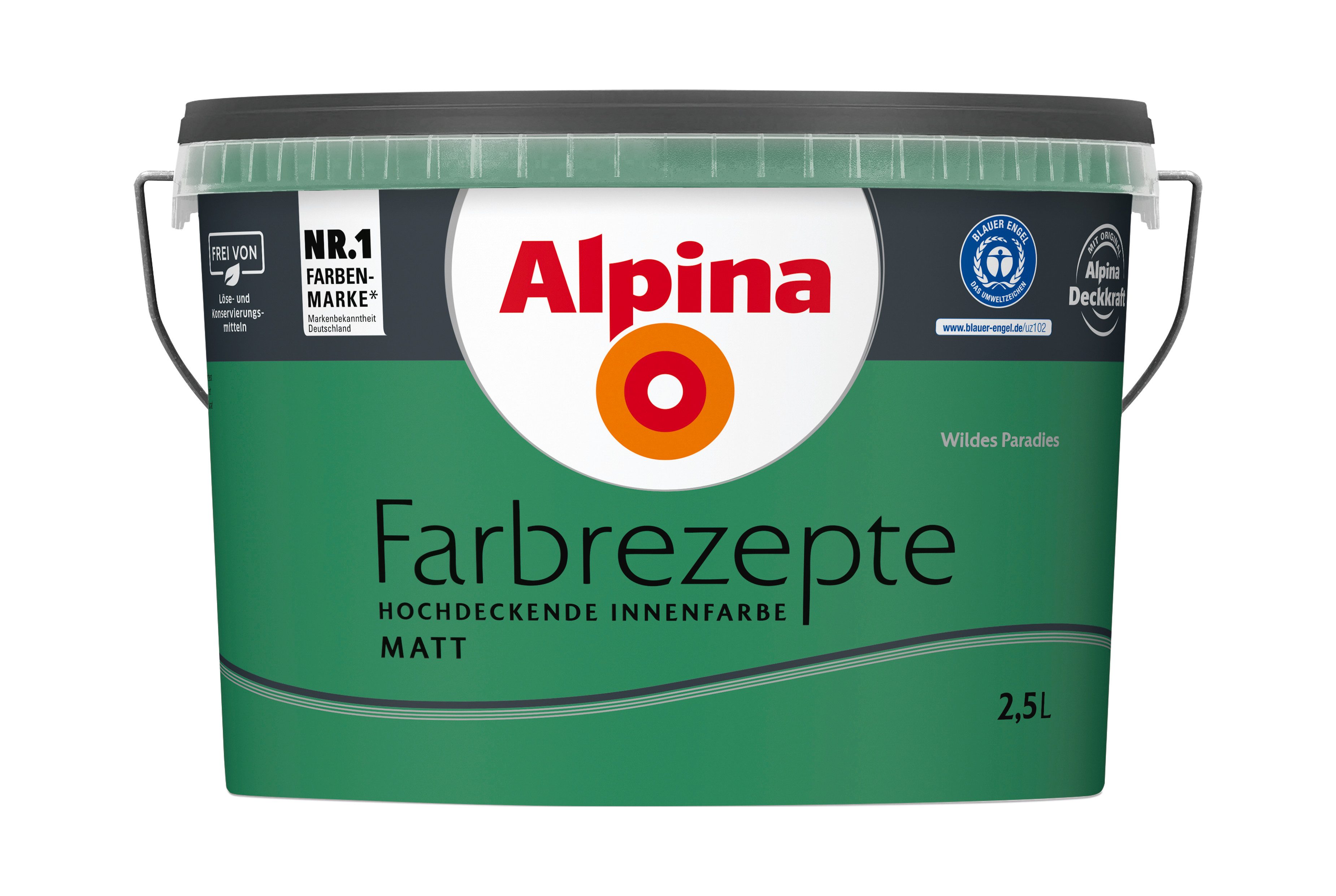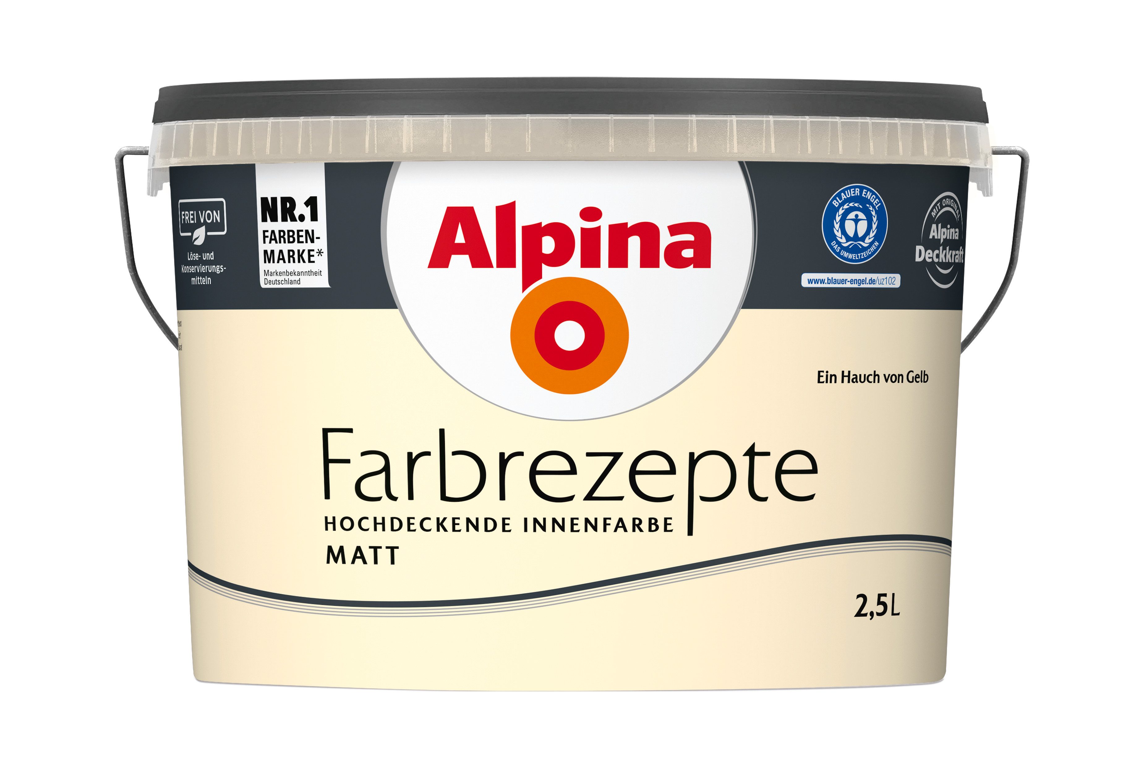 Verarbeitungshinweis | Die Alpina Farbrezepte Innenfarben decken in den meisten Fällen mit nur einem Anstrich und können unverdünnt verarbeitet werden. Stark saugende Untergründe mit Alpina Tiefgrund LF grundieren. Auf kontrastreichen Untergründen kann evtl. ein vorheriger Grundanstrich erforderlich sein. Hierfür die Farbe mit max. 10 % Wasser verdünnen. |