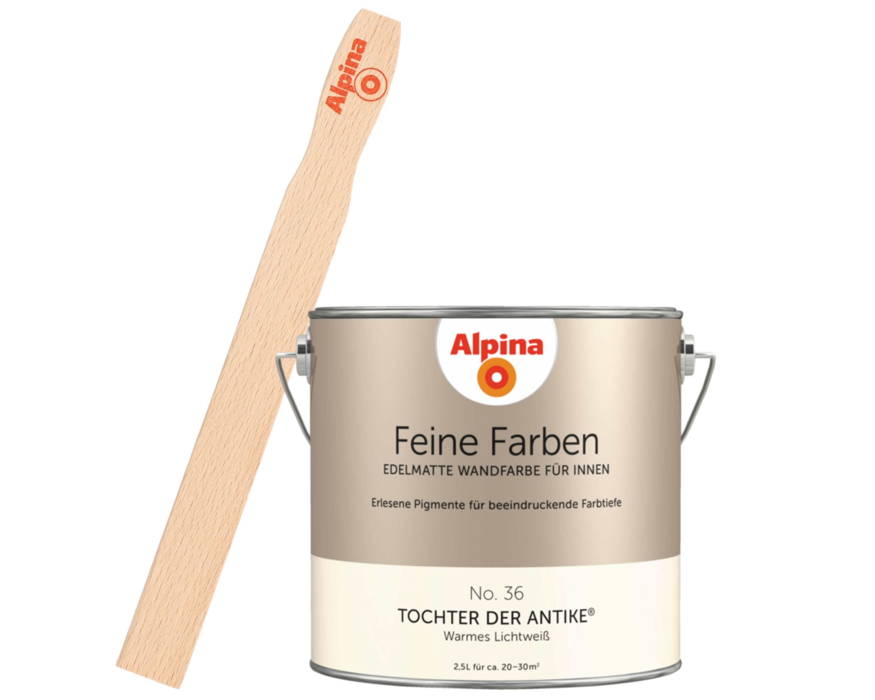Mit gratis Rührstab aus Holz zum perfekten anrühren unserer Alpina Feinen Farben!