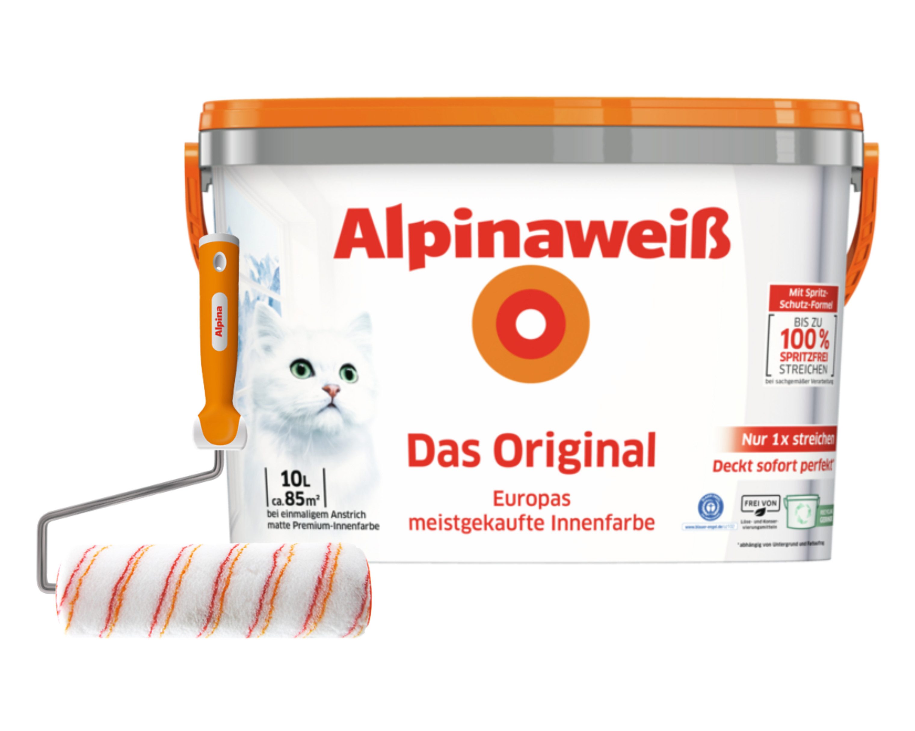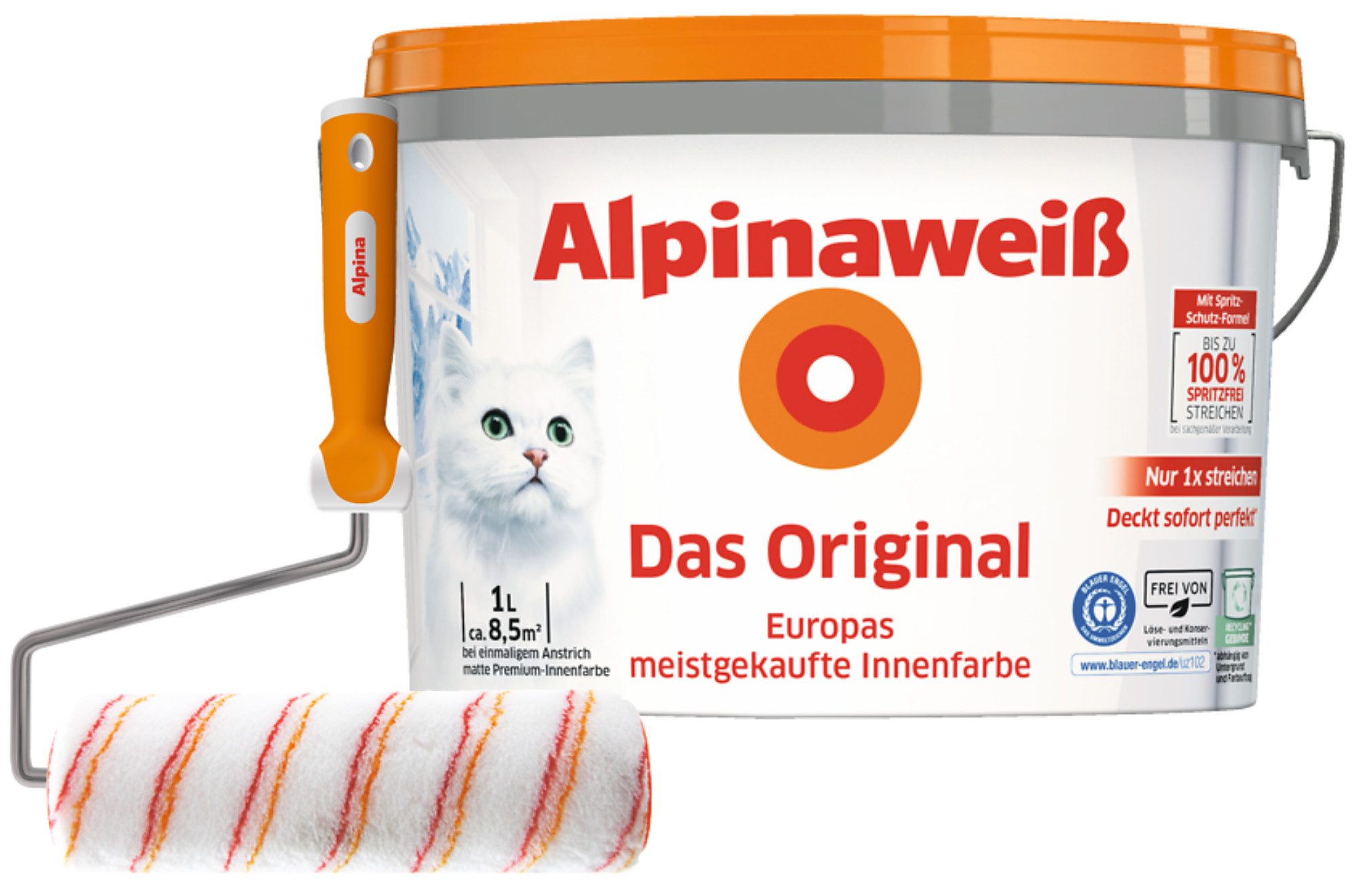 Farbe | Alpinaweiß Das Original 1 Liter matt + Spritz-Schutz Spezialroller 25 cm breit |
