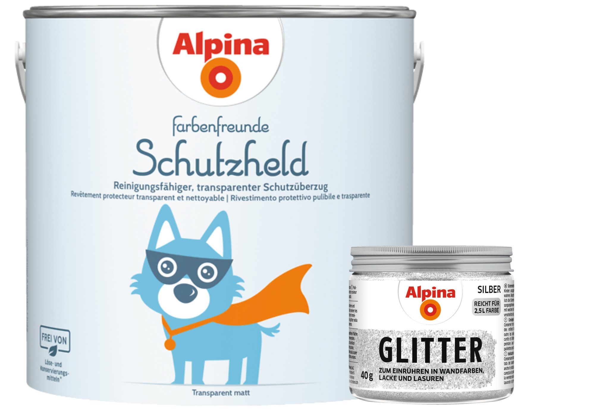 Farbe | Alpina Farbenfreunde Schutzheld 2,5L transparent matt + Glitter bronze 40g |