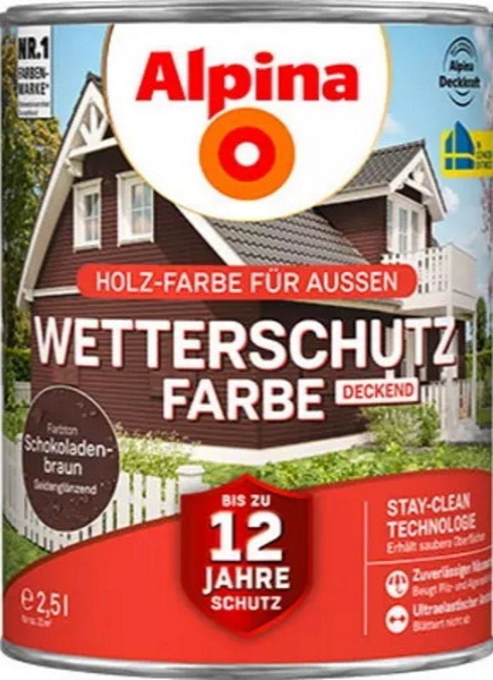 Verwendungszweck: Alpina Wetterschutz-Farbe deckend wurde im schwedischen Alpina Forschungszentrum entwickelt und unter extremen Witterungsbedingungen getestet. Die neuartige Stay-Clean Technologie vermindert die Schmutzanhaftung deutlich und schafft eine lang anhaltende, saubere Oberfläche. Der Schmutz wird beim nächsten Regen einfach abgewaschen. Alpina Wetterschutz-Farbe deckend bildet einen seidenmatten, deckenden, ultraelastischen Anstrich. Dieser blättert nicht ab und erzeugt somit einen zuverlässigen Nässeschutz, der bis zu 12 Jahre schützt und Pilz- und Algenbefall vorbeugt. Für maßhaltige und nicht maßhaltige Holzbauteile im Außenbereich wie z.B. Gartenhäuser, Verbretterungen, Zäune, Schindeln, Balkonbrüstungen etc.
