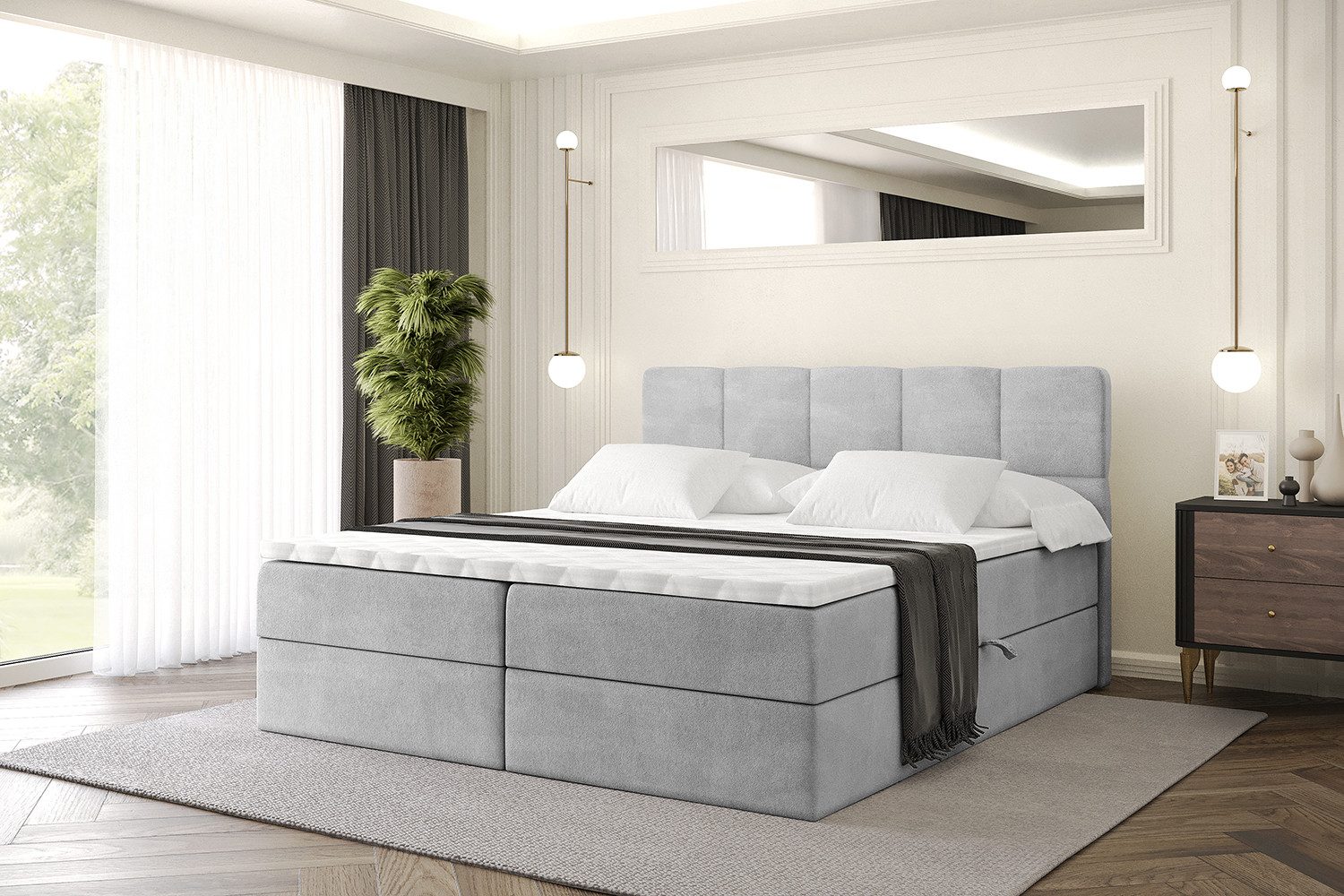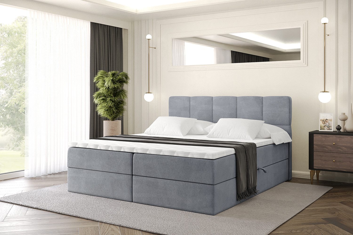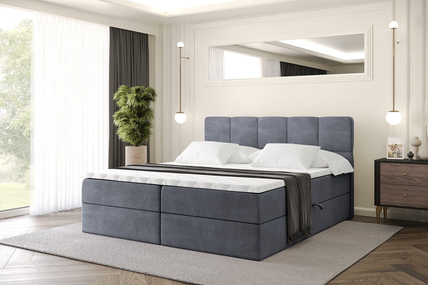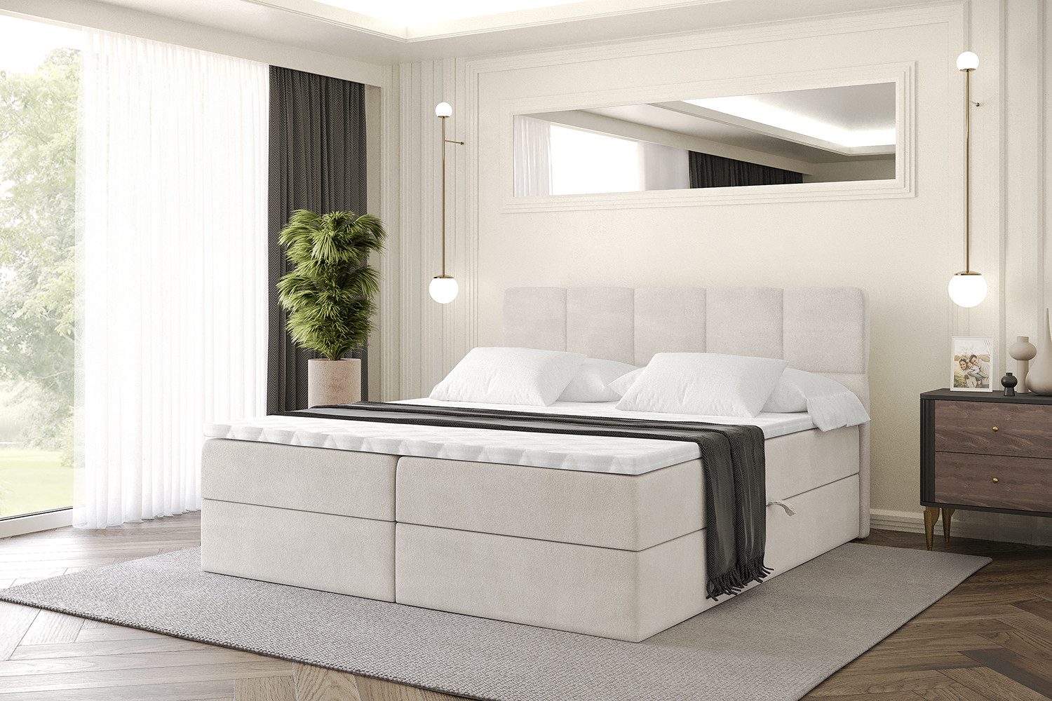 - Lieferumfang: Boxspring Bett 120/140/160/180/200 x 207 x 105 cm mit Rahmen, Matratze und Topper