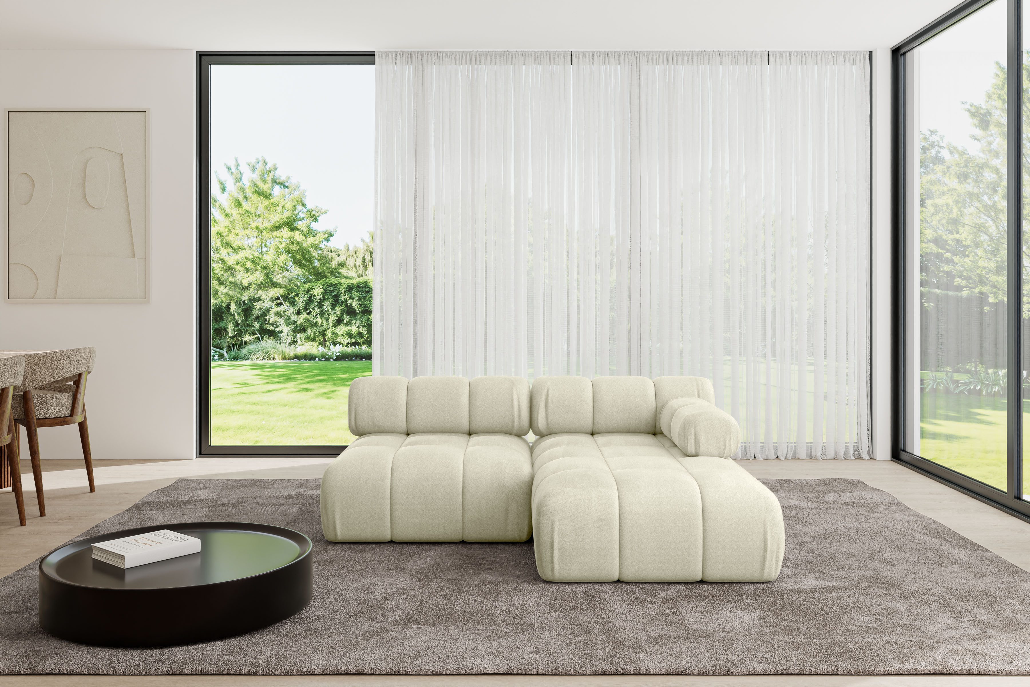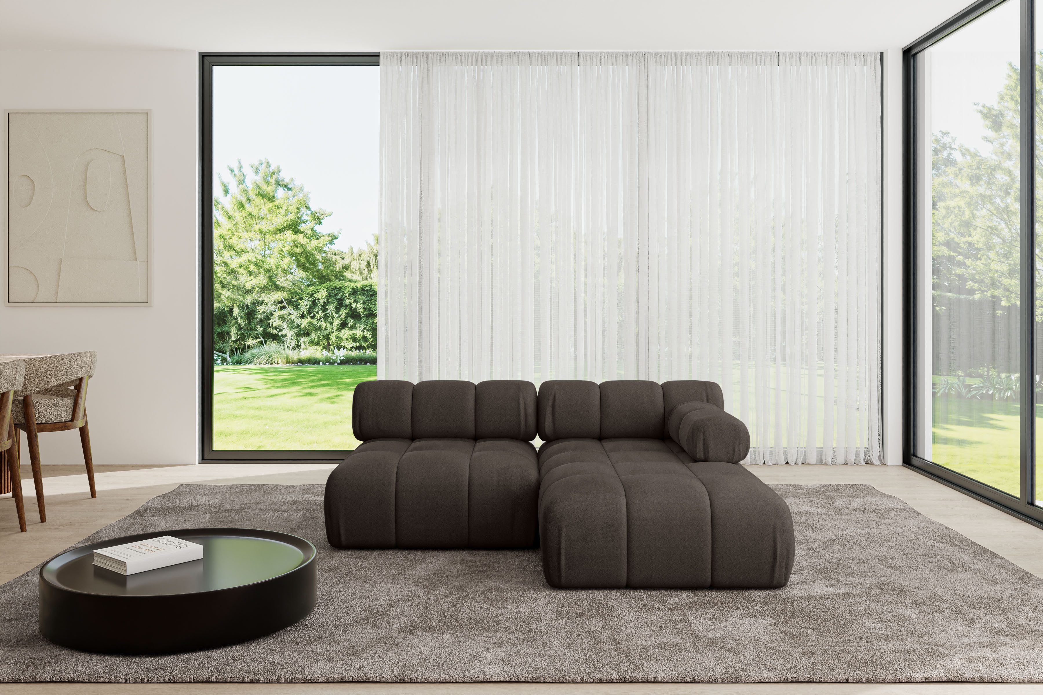Ein modernes, modular Sofa in L-Form ist ein vielseitiges Möbelstück, das in jeder Alltagssituation außergewöhnlichen Sitzkomfort bietet.