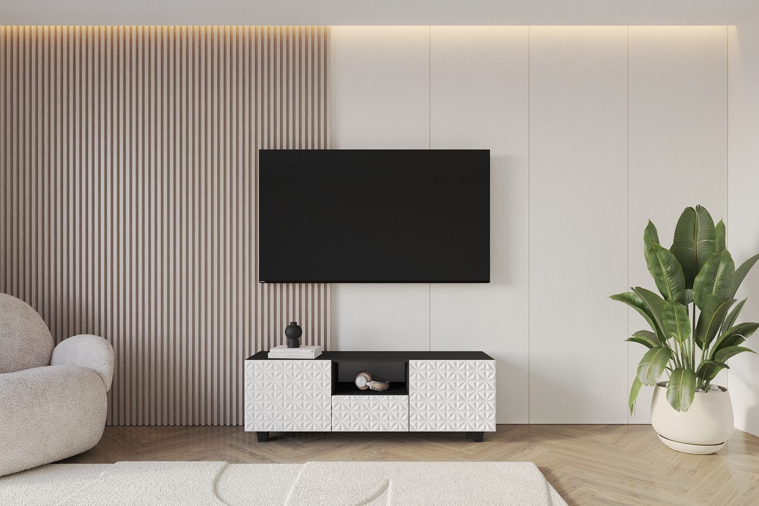 Die praktische TV-Kommode in zeitgemäßer Optik ist die perfekte Lösung für ein zeitgemäßes Raumkonzept. Das ansprechende Design des TV-Schranks überzeugt durch verschiedene Motive, Farben, pflegeleichte Materialien und eine sorgfältige Verarbeitung.