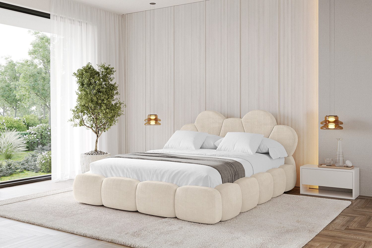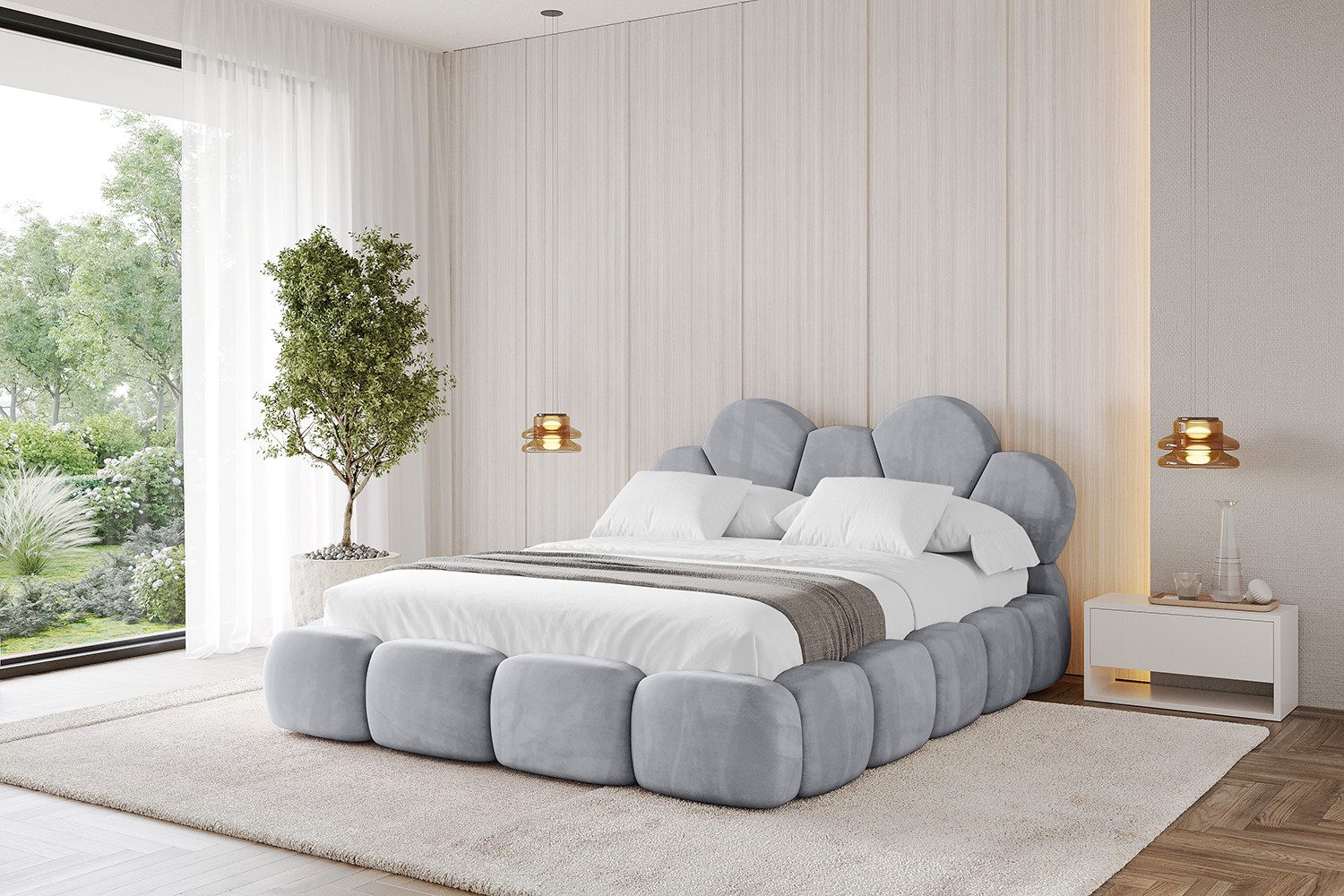 Der Bettrahmen ist mit einem weichen, anschmiegsamen Stoff gepolstert und verleiht Ihrem Schlafzimmer eine warme und gemütliche Atmosphäre und verleiht ihm einen einzigartigen Charakter. Die modernen Polsterstoffe, die in einer breiten Farbpalette erhältlich sind - von zarten Schattierungen bis hin zu intensiven Tönen - ermöglichen eine perfekte Anpassung an jede Einrichtung.
