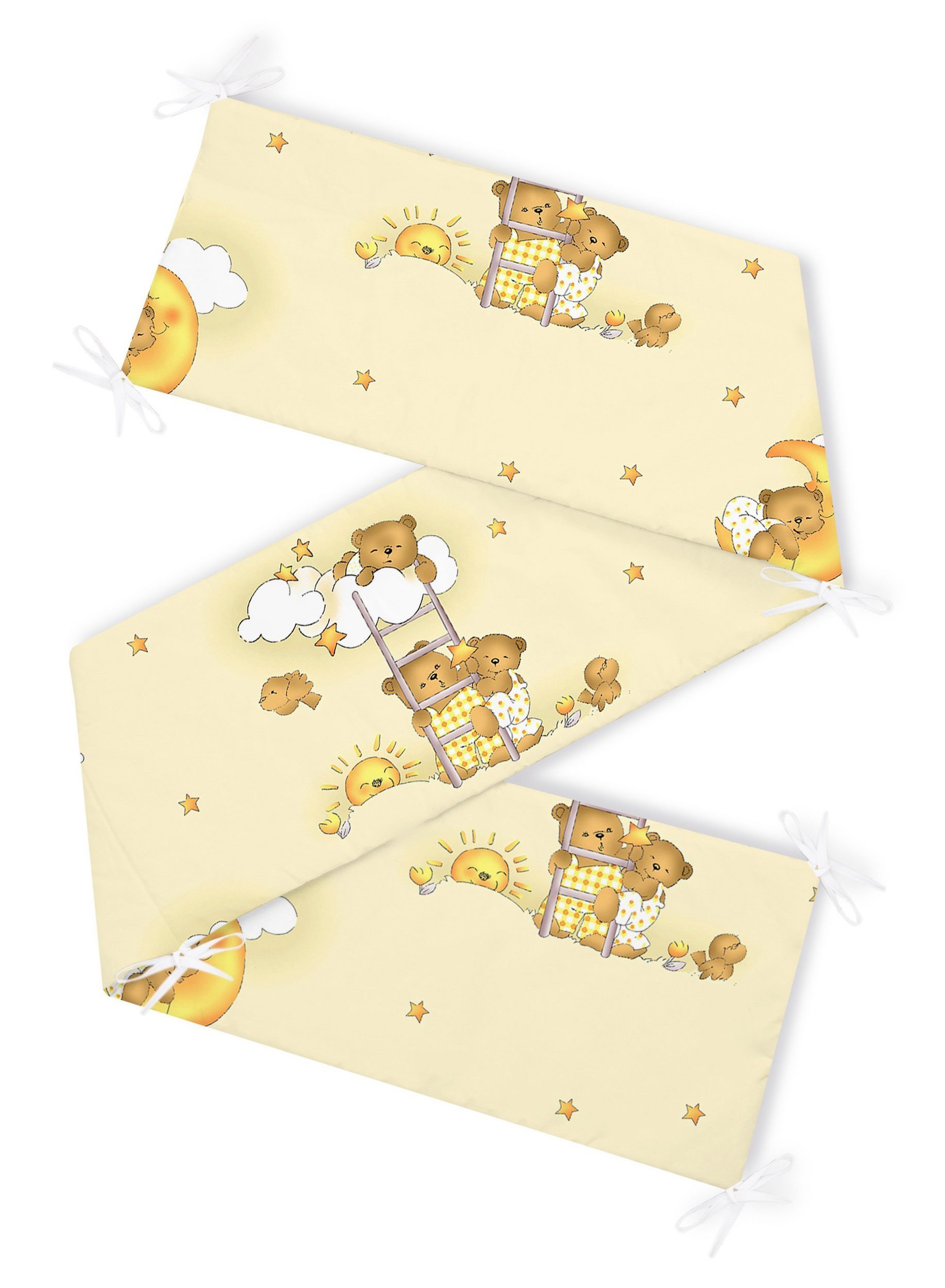 Dieses Nest kann man ohne Probleme am Babybett befestigen. Lieferumfang: Nestchen. Das Produkt wurde in der EU hergestellt. Das Material der Umrandung entspricht voll und ganz Ihre Erwartungen und fühlt sich auch gut an. Es ist ausreichend weich als Polsterung und halt super für kuscheliges und angenehmes Schlafen. Das Nestchen lässt sich dank der Bändchen an der Außenseite des Bettgitters anbringen. Sie können die Bettumrandung als Bettschlange im Hochbett. So fallen alle Kuscheltiere nicht mehr unter das Bett.