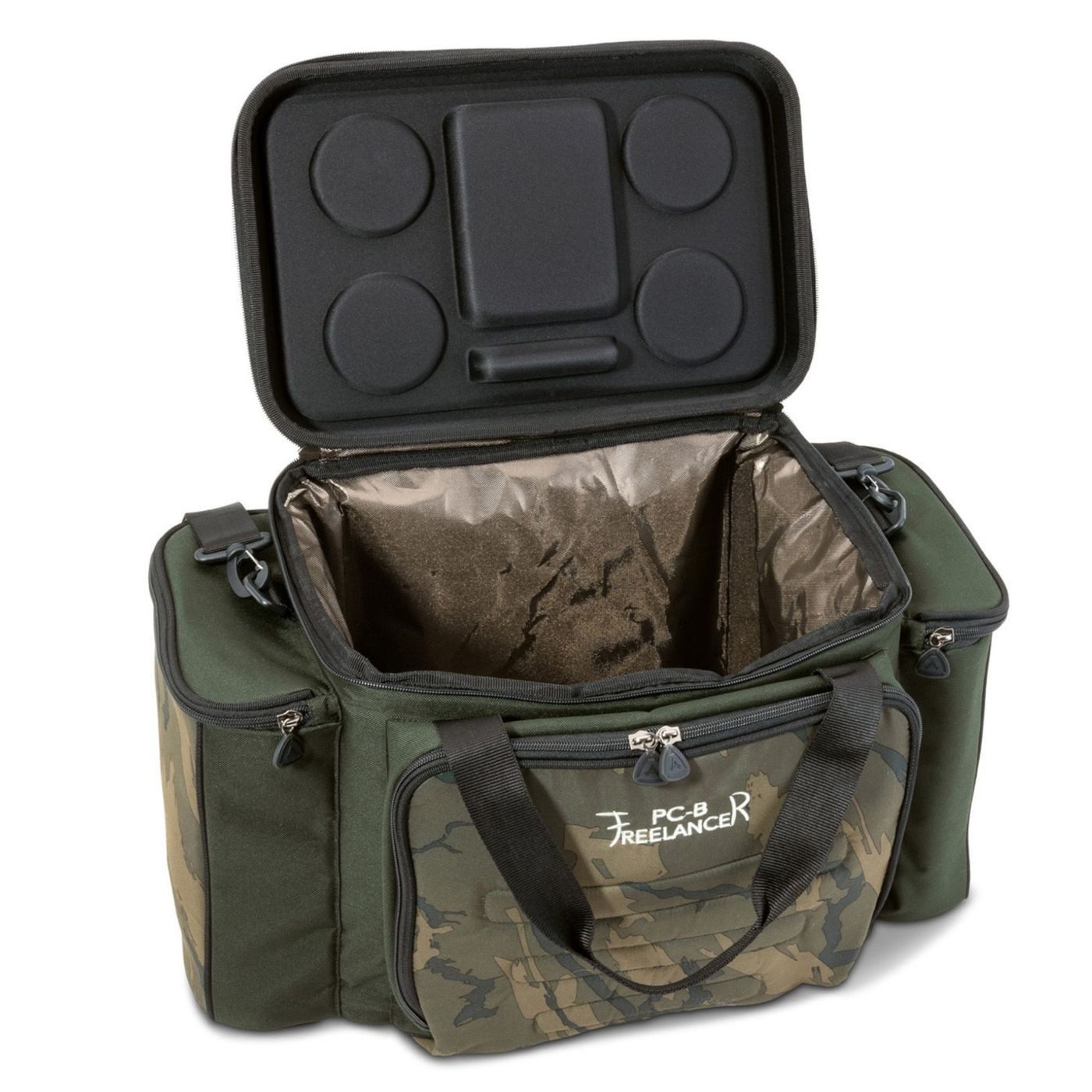 Anaconda Freelancer Prime Catering Bag - Die Freelancer Prime Catering Bag von Anaconda ist eine vielseitige Geschirrtasche, die speziell für das komfortables Outdoor-Catering beim Karpfenangeln entwickelt wurde. Im Freelancer Camodesign und mit einem robusten Hardcase-Cover ausgestattet, bietet die Tasche nicht nur Platz für ein komplettes Edelstahl-Geschirrset, sondern auch durchdachte Halterungen für Getränke und das Handy. Das Geschirrset aus Edelstahl umfasst vier Teller, Messer, Gabeln und Teelöffel sowie ein Handtuch, alles griffbereit in der Fronttasche verstaut. Mit einem Gesamtmaß von 60 x 35 x 35cm verfügt die Tasche über eine gepolsterte, verstellbare Schultergurte und stabile Tragegriffe, die den Transport selbst bei voller Beladung bequem machen. Seitlich befinden sich Kühltaschen für Lebensmittel und Köder (28 x 20 x 15cm), während der verstärkte und wasserfeste Boden für Schutz vor Nässe und Schmutz sorgt. Die Freelancer Prime Catering Bag ist die ideale Lösung für Angler, die auch am Wasser nicht auf Komfort und gutes Essen verzichten möchten.
