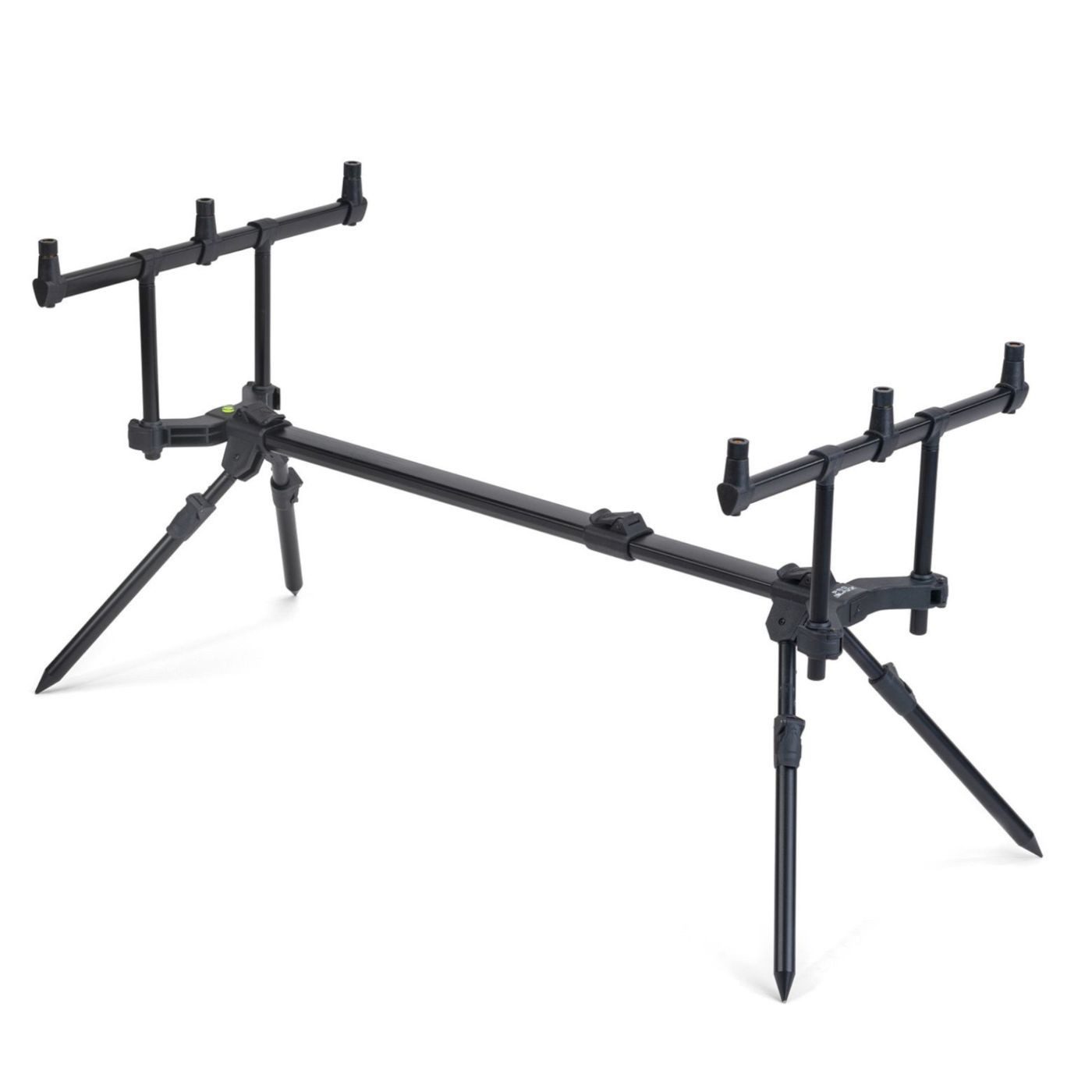Anaconda BLAXX PRO Pod - Das BLAXX PRO Pod Rodpod von Anaconda kombiniert Stabilität und Flexibilität in einem kompakten, schnell aufbaubaren Design. In elegantem Schwarz gehalten, eignet sich dieses leichte 4-Bein-Rodpod für unterschiedlichste Angelbedingungen und lässt sich auf eine Длина von 65 bis 100cm ausfahren. Die Beine sind mit BLAXX Cam Lock Verschlüssen ausgestattet, die eine schnelle und sichere Höhenverstellung ermöglichen. Dank des Klappgelenks können die Beine individuell positioniert werden, um eine stabile Balance auf jedem Terrain zu finden. Ein besonderes Merkmal des BLAXX PRO Pods ist das 3/8-Gewinde an den Beingelenken, das die Verwendung verschiedener Banksticks ermöglicht, sodass bei Bedarf längere Modelle nachträglich montiert werden können. Die beiden 3er-Buzzer Bars lassen sich in der Höhe verstellen, um Ruten in der gewünschten Position zu halten. Mit einem Gewicht von nur ca. 1,4kg ist das Rodpod leicht und mobil und wird in einer robusten Transporttasche geliefert. Die kompakten Transportmaße von 85 x 25 x 5cm machen den Transport einfach und platzsparend.