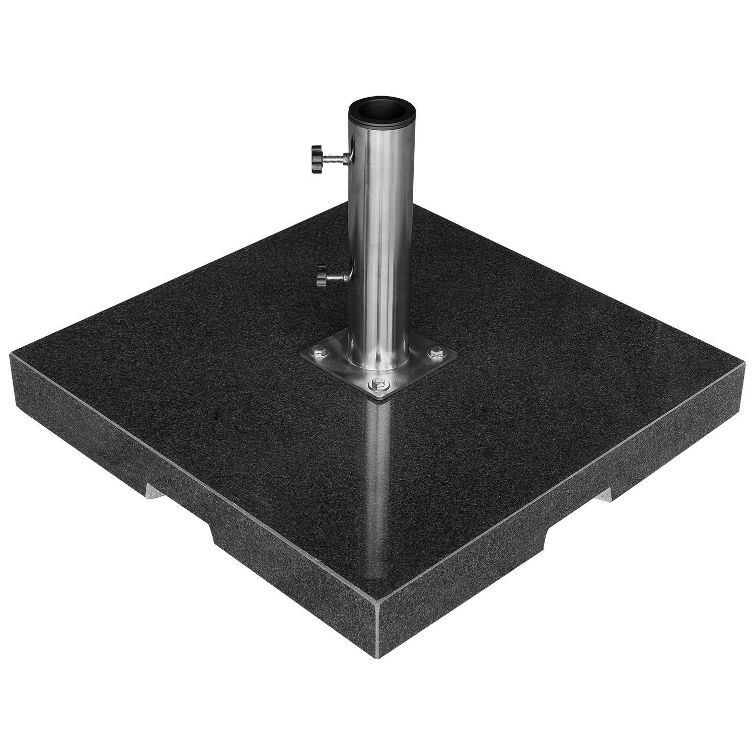 Material: Granit, Edelstahl Maße Stein (L x B x H): ca. 600 x 600 x 78 mm Stellmaße mit Füßen (L x B x H): ca. 600 x 600 x 85 mm Длина Rohr: ca. 300 mm Schaftdurchmesser: 50/60 mm Stamm Feststellschraube: ja, 2 Stück Gewicht: ca. 70 kg