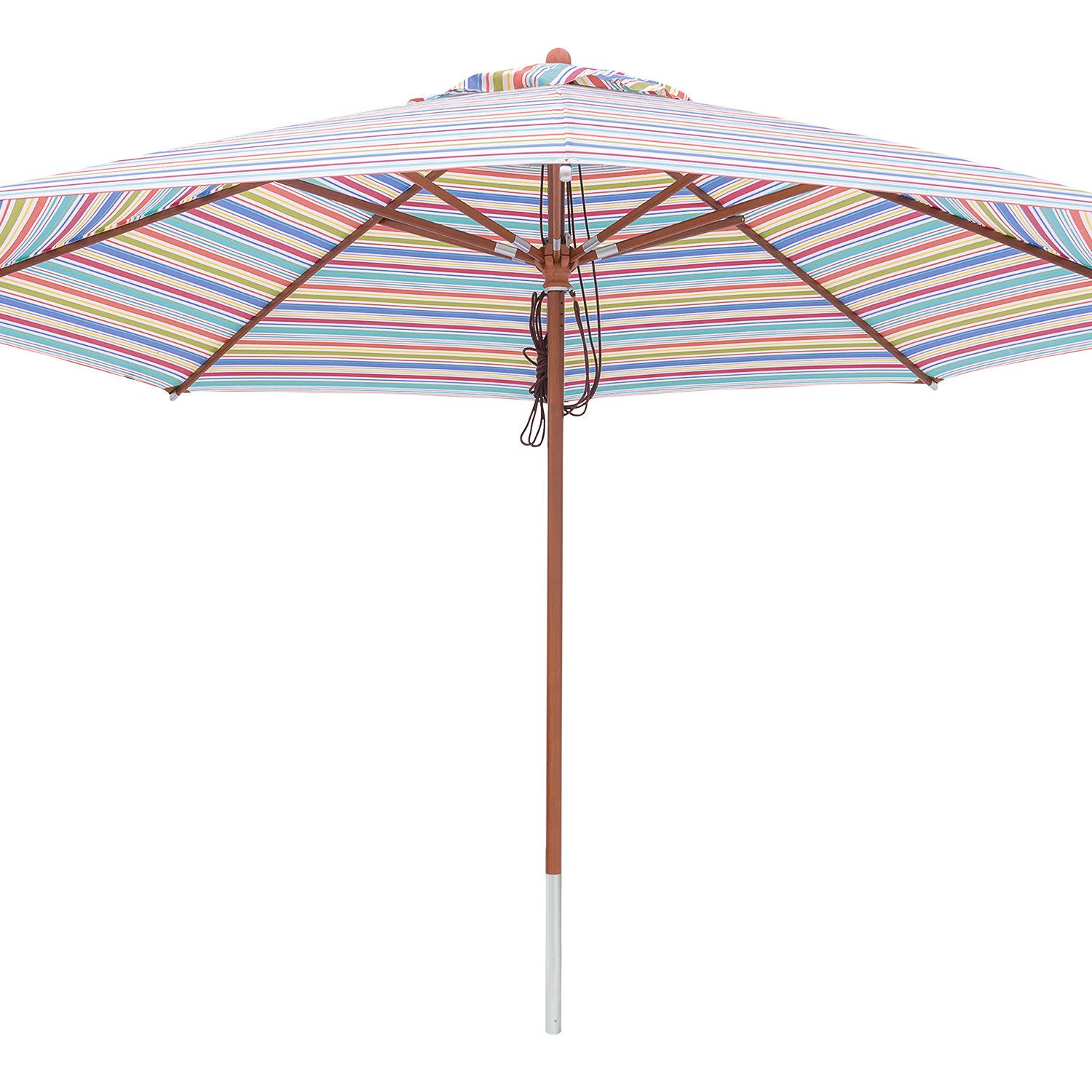 Gestänge: - dicker, einteiliger Stamm mit Durchmesser 48 mm x 2.76 mm - Hartholz - teakfarben lackiert für höhere Witterungsbeständigkeit - Streben bestehen aus stabilem und witterungsbeständigem Kempas-Holz - Strebenabschlüsse aus mattem Aluminium - Streben und Beschläge sind witterungsbeständig