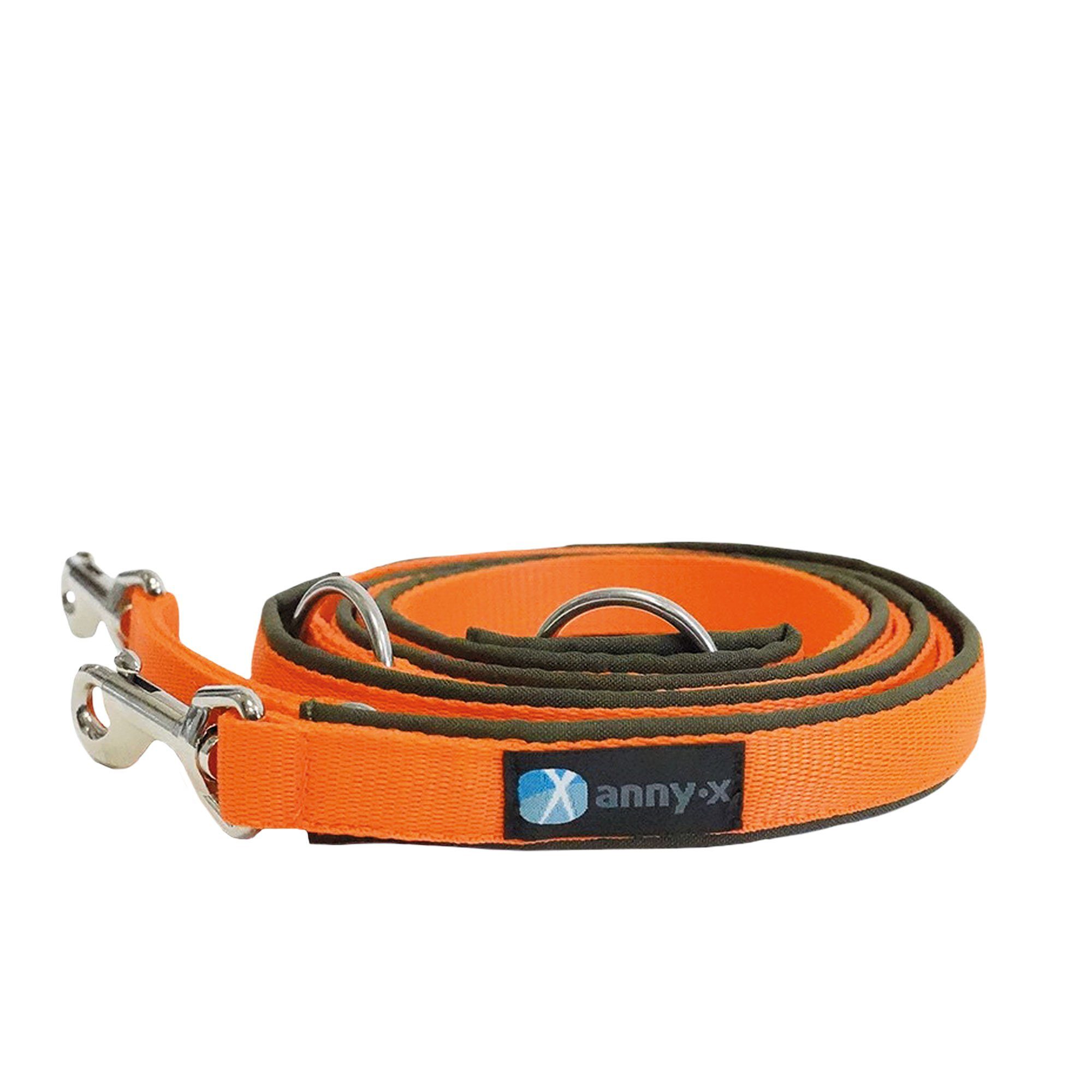 Annyx Führleine Classic Bolt Fun -Farblich zum Annyx Brustgeschirr Fun passende 3 m-Führleine.Eine sehr flexibel verwendbare, 4-fach verstellbare 3 m Nylon-Leine. Auch als Fahrradleine, Joggingleine oder als Schulterleine ideal. Durch die weiche Teilpolsterung, durchgehend auf 1,5 m Длина, ist diese Leine angenehm auch über längere Zeit zu tragen. Selbst wenn der Hund einmal zieht, schneidet sie nicht ein und rutscht nicht durch die Hand. Aus abriebfesten Materialien gefertigt, für optimale Langlebigkeit und geringen Verschleiß. Die hochwertigen klassischen Karabiner aus Zinkdruckguss und Metallringe aus Edelstahl gewährleisten größtmögliche Sicherheit.