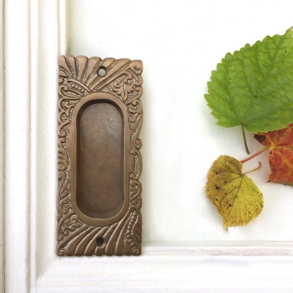 Dieser Muschelgriff eignet sie sich hervorragend zur Aufwertung antiker Schiebetüren. Auch für die Schiebetüren eines Schrankes können sie zum Einsatz kommen . Diese schön verzierte Griffmulde ist aus patiniertem Messing und nach antikem Original in hervorragender Qualität gearbeitet. Die Einlassmulde für die Schiebetür bildet eine passende Ergänzung zu Ihren Antik Türbeschlägen. So schmückt diese Mulde antike, sowie auch neu gefertigte Türen und ist einer von vielen Beschlägen aus unserem umfangreichen Меню in unserem Shop.