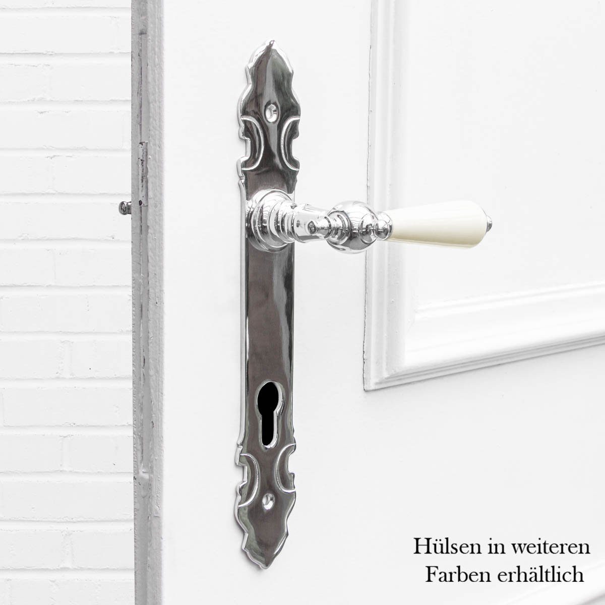 Die Porzellan-Farbe der Türklinken-Griffe ist elfenbeinfarben. Sie können diese in 4 weiteren Farben wählen.