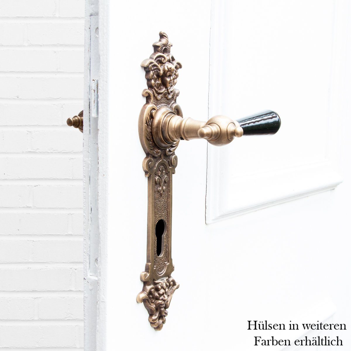 Die Porzellan-Farbe dieser Türklinken-Griffe ist schwarz.