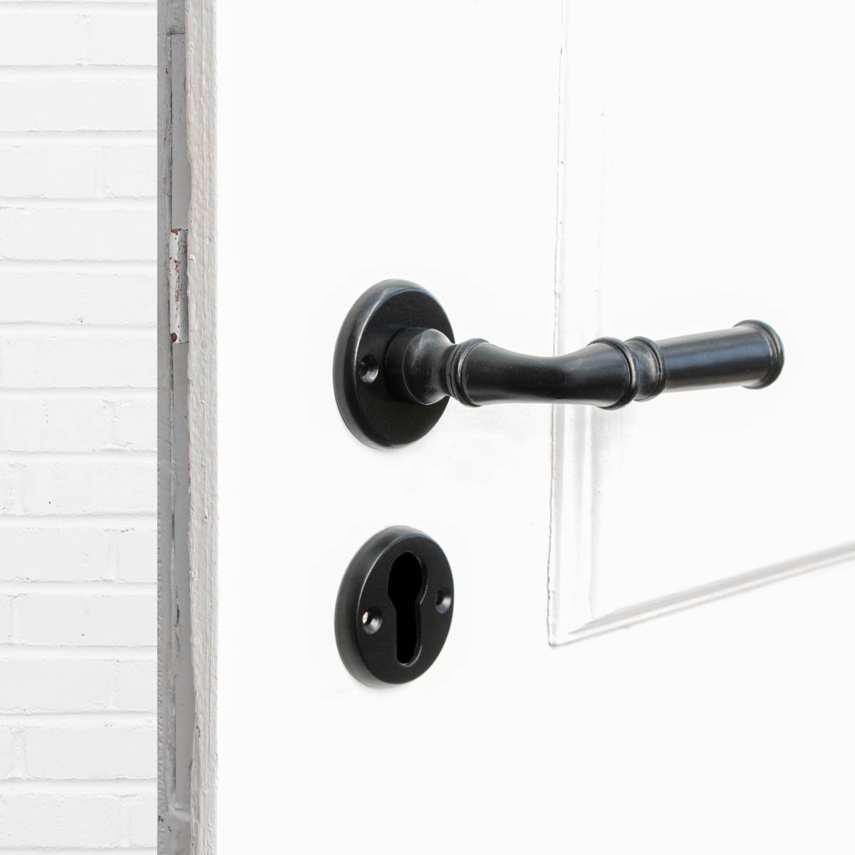 Die Klinken sind sehr Hand-geschmeidig, für ein antikes Ambiente sorgt die tiefschwarze Oberfläche. Bestens hierzu passen die schlicht-runden Rosetten, die Schlossrosette wurde für ein modernes Zylinderschloss gearbeitet!