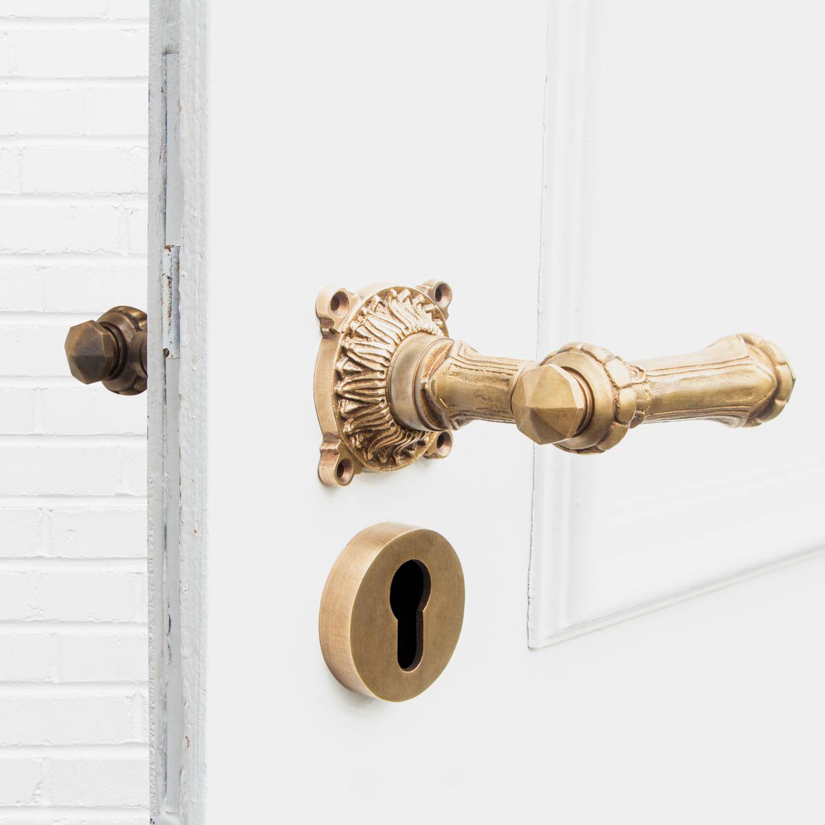 Lieferumfang: 1 Drückergarnitur: 1 Paar Türklinken für die Haustür, gründerzeitlich, Messing
