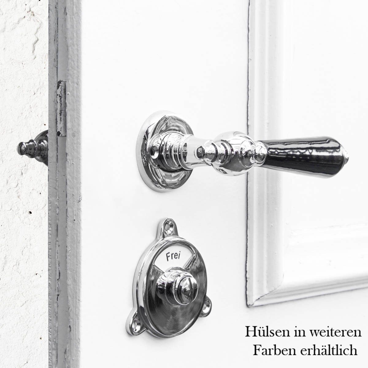 Dieser exzellente Türbeschlag ein idealer Blickfang und sehr fein gearbeitet in klassischer Stilrichtung, welche gut in den Landhausstil passt. Mit dem hübschem Emaille-Drehschild: besetzt und frei handelt es sich um einen augenfälligen Toiletten-Türbeschlag für das WC.