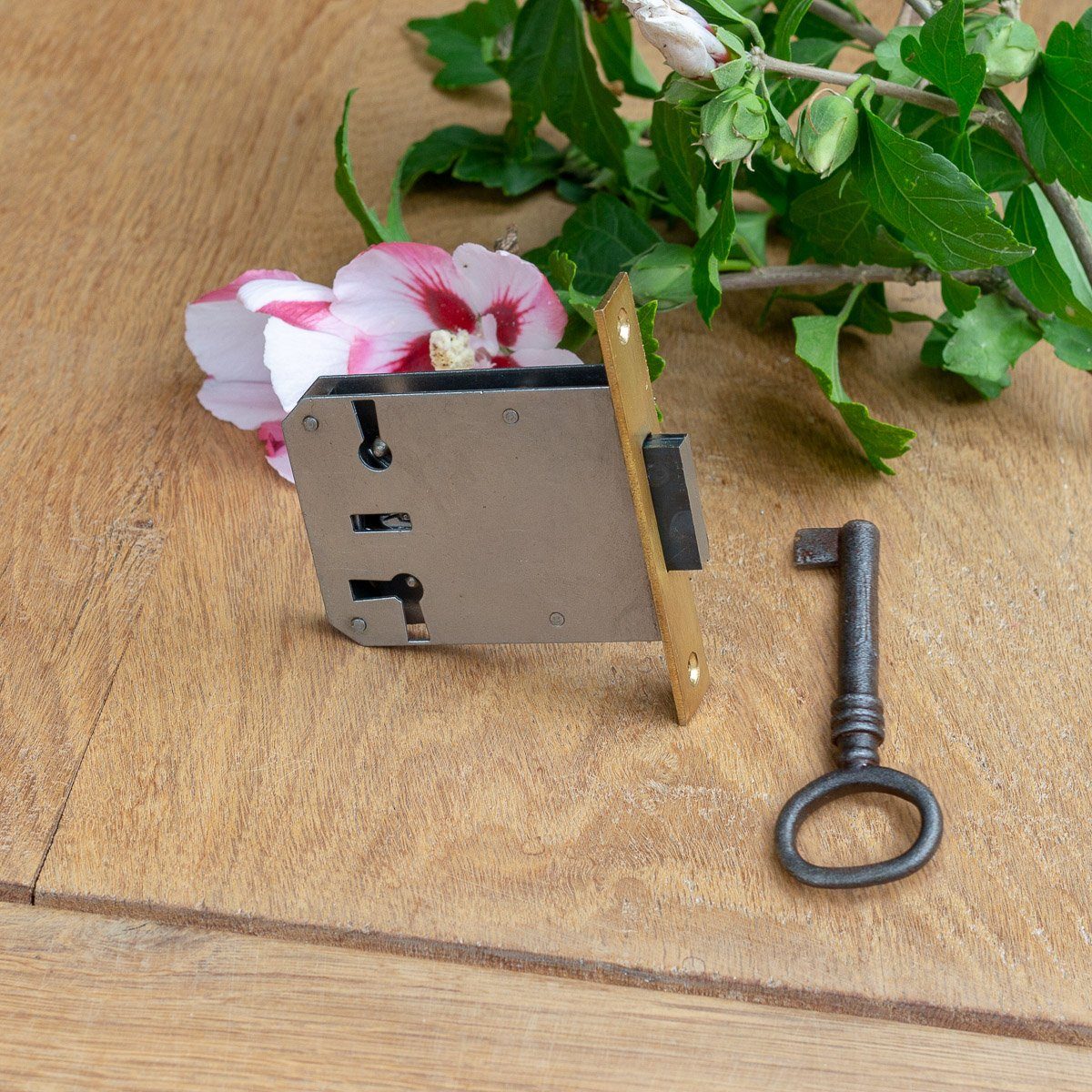 Ein hervorragend verarbeitetes und absolut robustes Einsteckschloss für die Instandsetzung von antiken Schränken, Kommoden oder Schreibtischen.