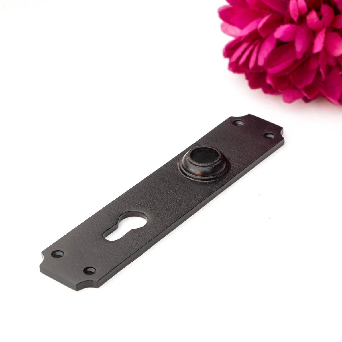 Dieses tiefschwarze Langschild besteht aus hochwertigen Eisen und ist wie Antik gearbeitet. Durch die hochwertige Pulverbeschichtung ist dieser Türbeschlag absolut korrosionsgeschützt und auch wasserabweisend.