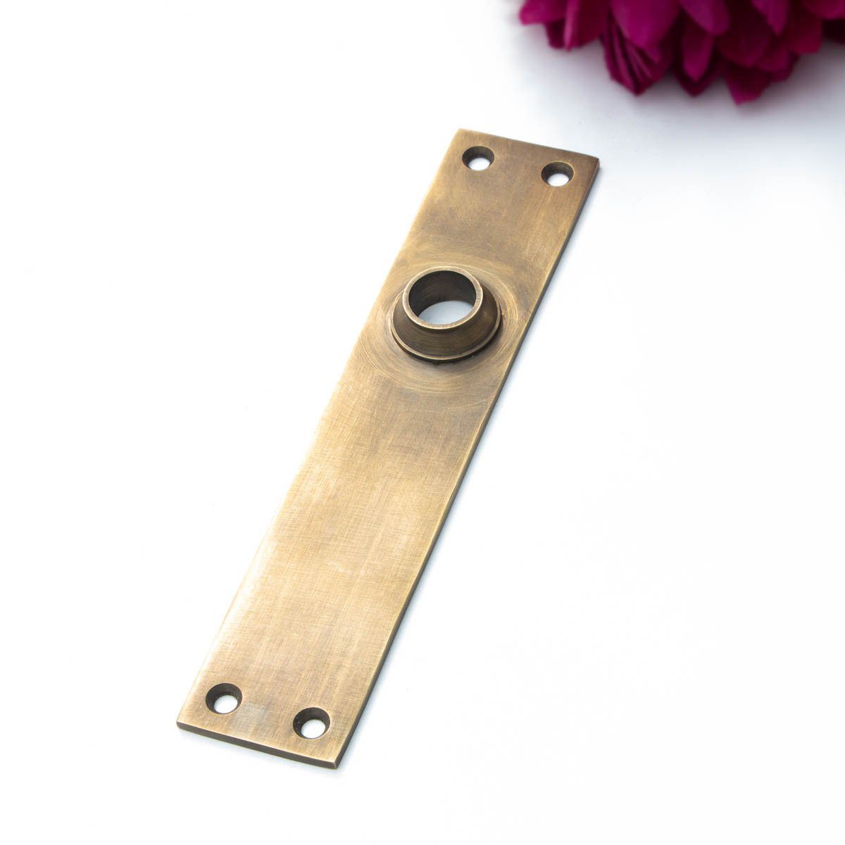 Eine wunderschön patiniert und gebürstetes Langschild aus Messing, als wunderbare Ergänzung für alte Zimmertüren einsetzbar. Mit dem linear, minimalistischen Design stellt dieses stilvolle Langschild die beispiellose Grundlage für die meisten Drückergarnituren dar.