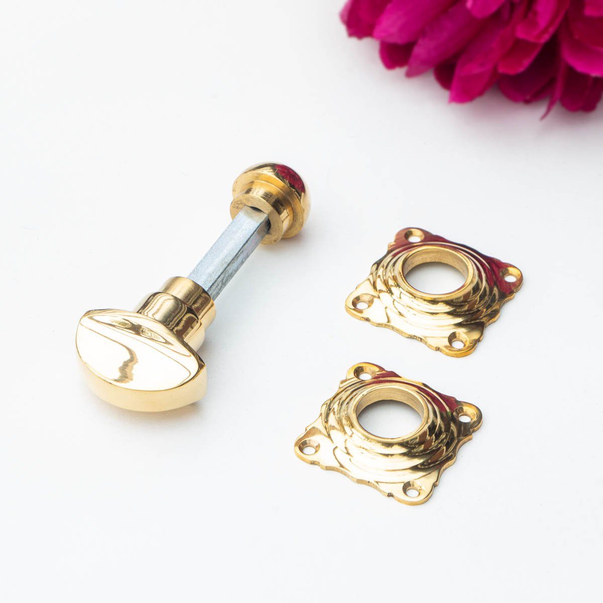Wunderschön und wie antik für die Tür zur Toilette ist dieser Drehverschluss aus poliertem Messing. Ein stilvoller Türbeschlag an der Tür zur Toilette oder zum Bad - hochwertigst gefertigt.