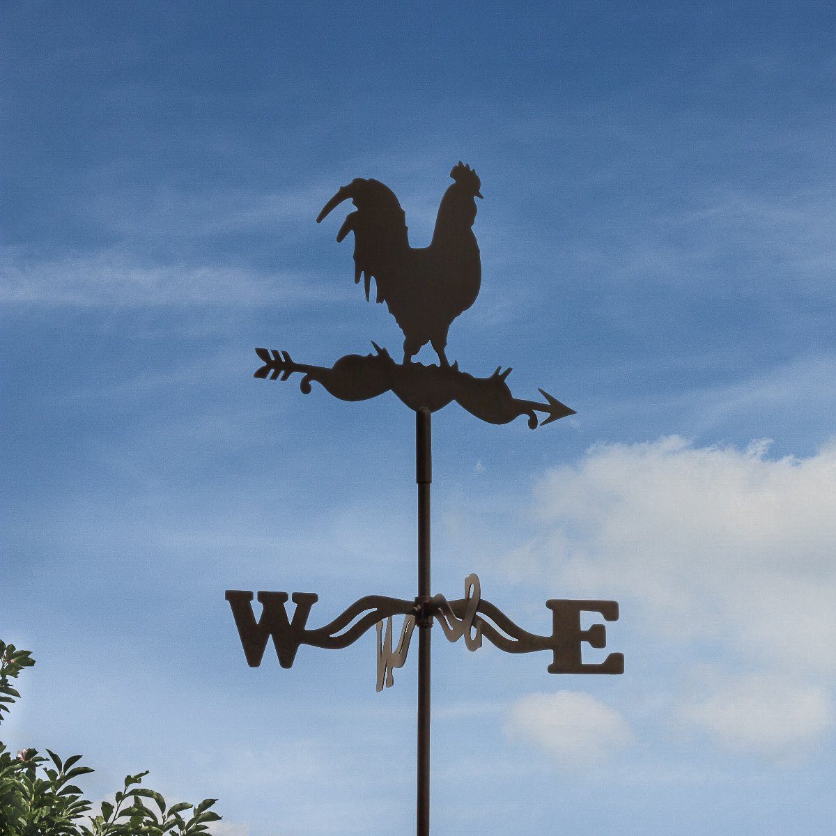 Lieferumfang: 1 Wetterhahn aus Metall, schwarz lackiert, mit Wandbügel und Erdspieß