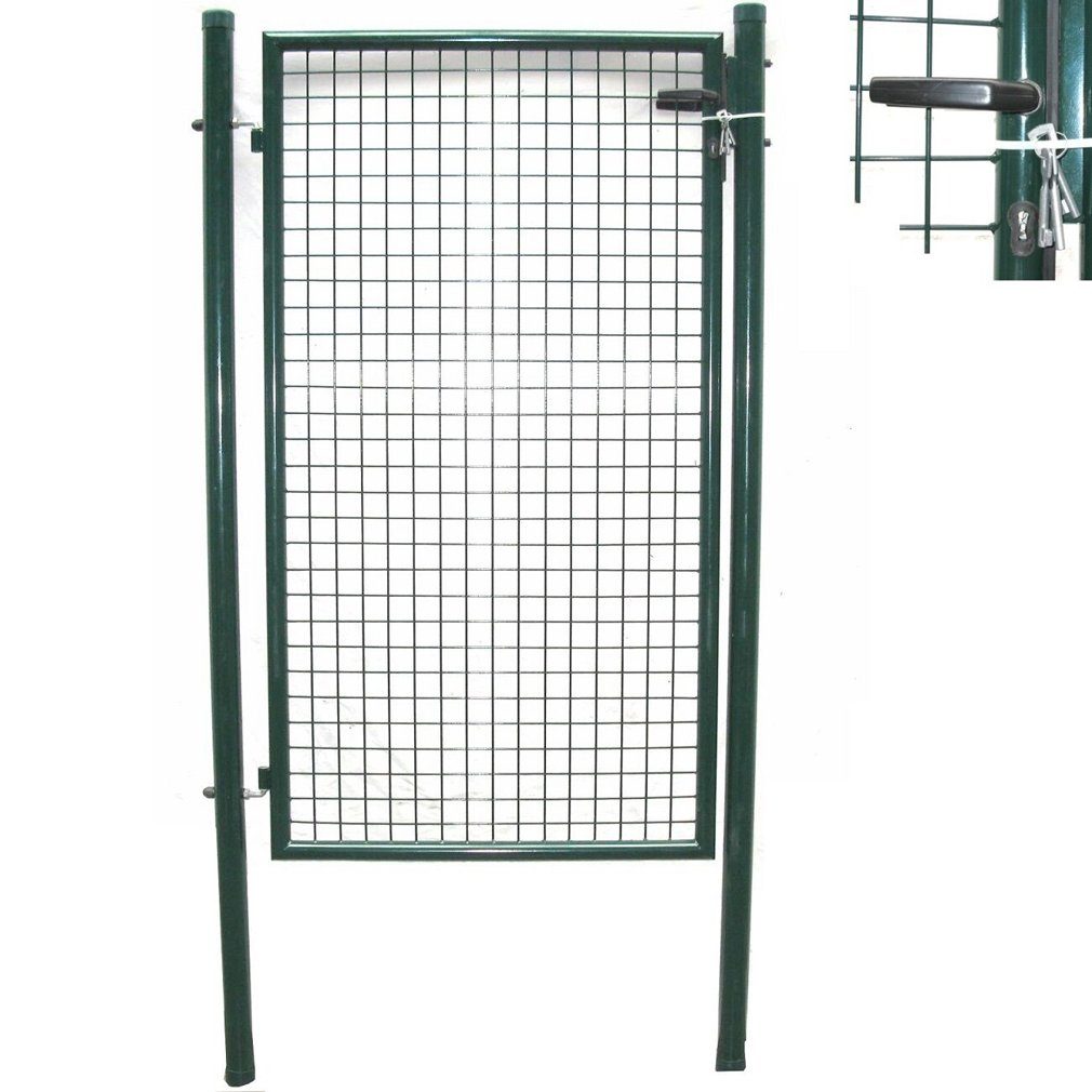 Dieses hochwertige Stahlgitter-Gartentor 100 x 160 cm eignet sich für diverse Zaunanlagen und Begrenzungen und ist durch die Verzinkung und grüne Pulverbeschichtung robust und langlebig verarbeitet. Es ist zur Grundstückabgrenzung gleichermaßen geeignet wie zum Schutz. Es passt sehr gut zu Maschendrahtzäunen. Als abschließbares Zauntor ist es zur Grundstücksabgrenzung und als Zugwegeschutz bestens geeignet. Die enge Maschenweite von ca. 50 mm trägt dazu bei.