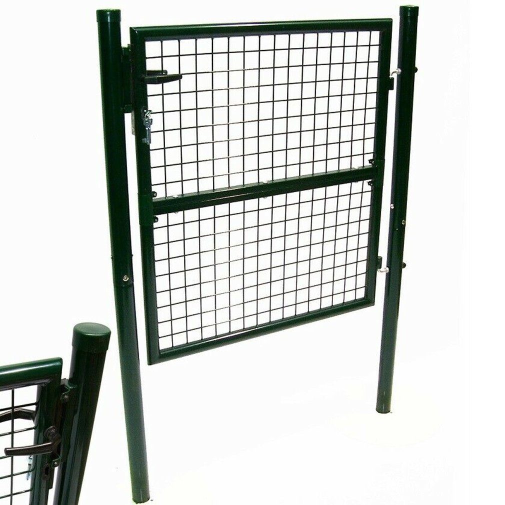 Diese hochwertige Stahlgitter-Gartentor eignet sich für diverse Zaunanlagen und Begrenzungen und ist durch die Verzinkung und grüne Pulverbeschichtung robust und langlebig verarbeitet. Es ist zur Grundstückabgrenzung gleichermaßen geeignet wie zum Schutz. Es passt sehr gut zu Maschendrahtzäunen. Als abschließbares Zauntor ist es zur Grundstücksabgrenzung und als Zuwegeschutz bestens geeignet. Die enge Maschenweite von ca. 50 mm trägt ein übriges dazu bei.