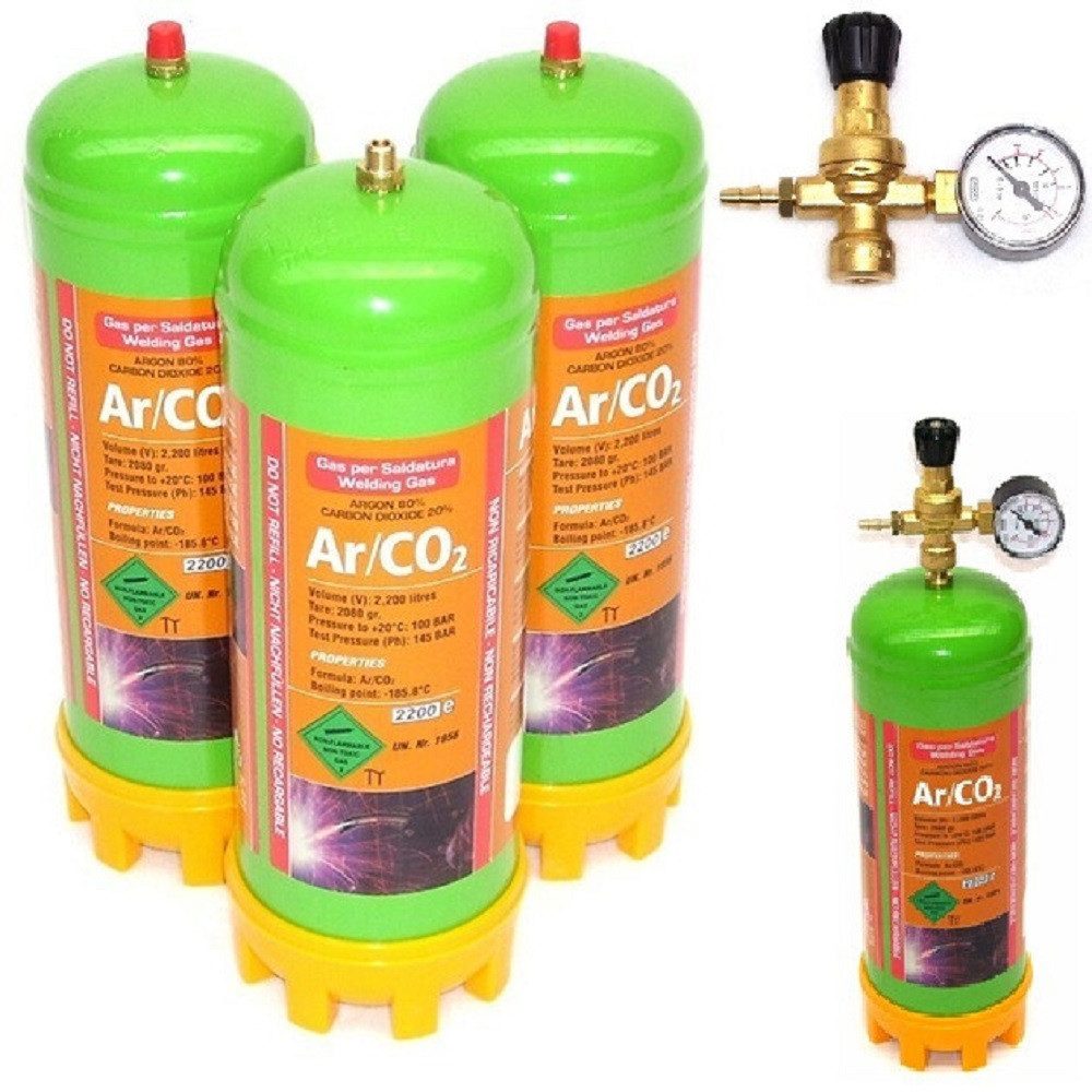 3 Stück, Einweg-Schutzgasflasche 2.2 L, 20% Co² - 80% Argon