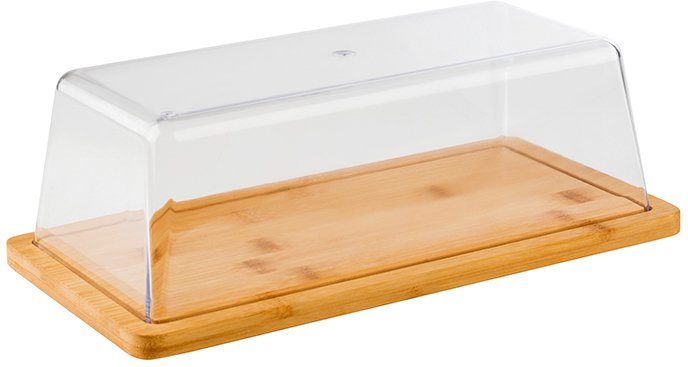 Dieses ölimprägnierte Tablett aus Bambus überzeugt durch ein tolles Design und macht auf dem Tisch richtig was her. Es ist feuchtigkeitsabweisend und lässt sich perfekt dazu nutzen Speisen zu präsentieren. Die dazugehörige Haube aus Polystyrol bietet den Speisen des Впередen einen optimalen Schutz.