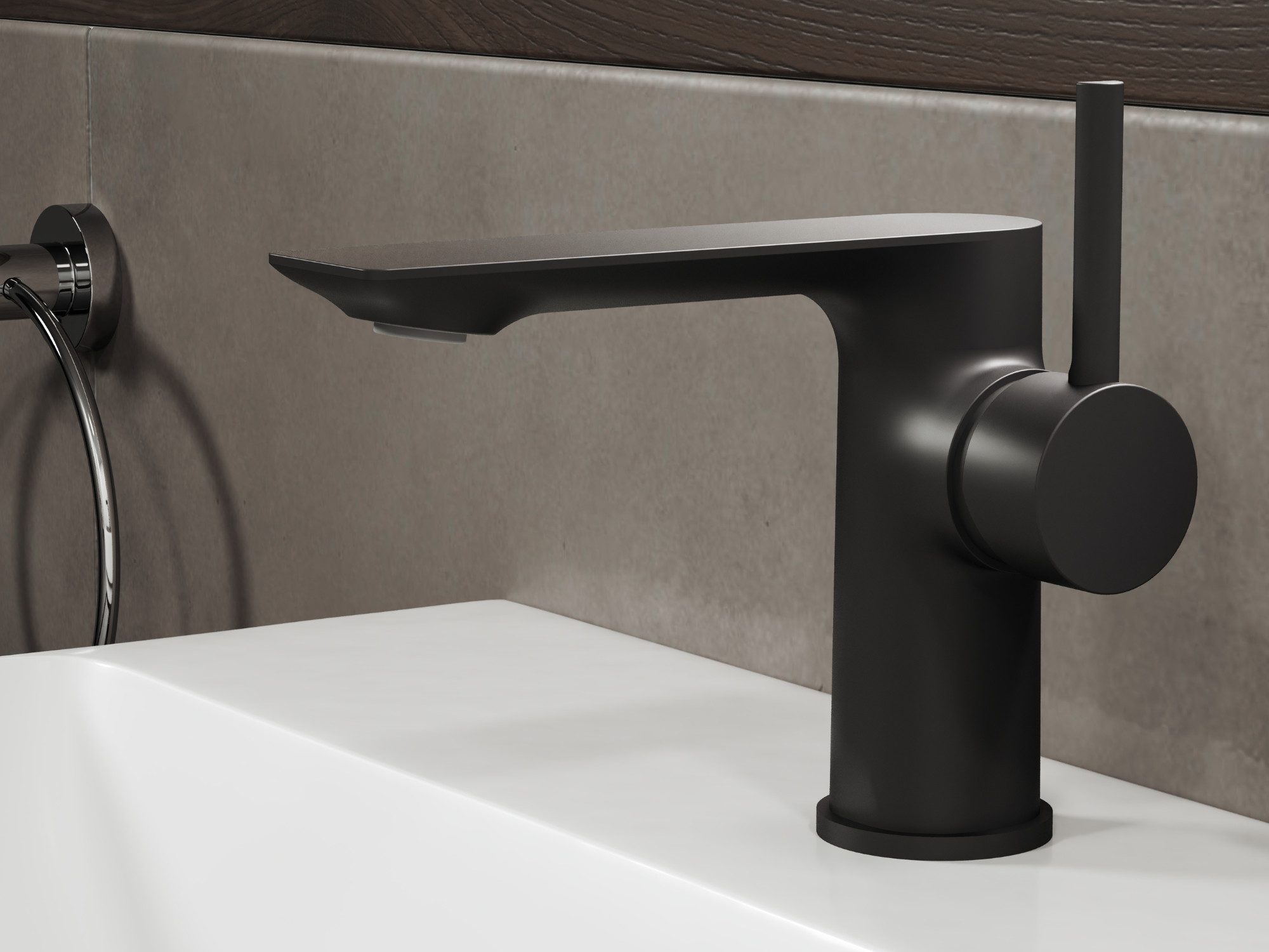 Die stilvolle Einhebel-Waschtischarmatur aus schwarz matt beschichtetem Messing vereint modernes Design mit praktischer Funktionalität. Die matte Oberfläche ist widerstandsfähig und verleiht Ihrem Badezimmer eine elegante und zeitgemäße Optik.